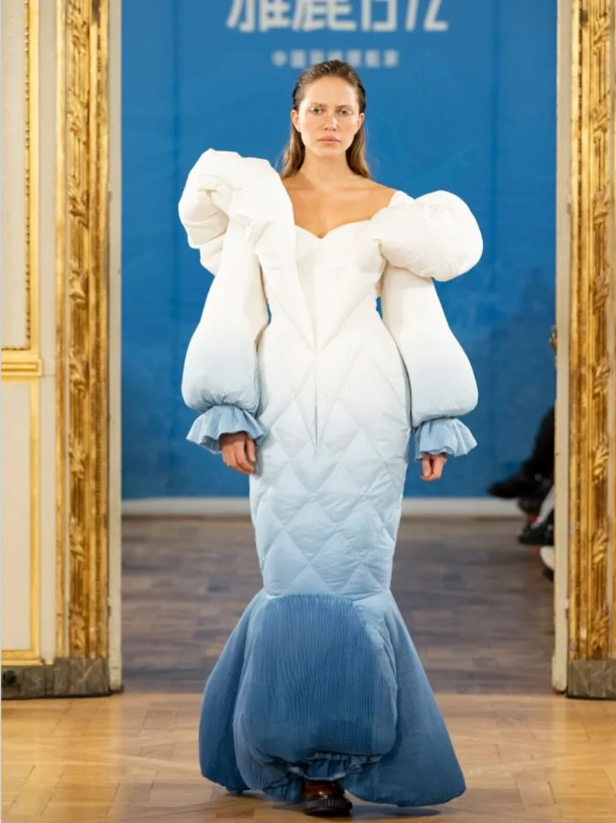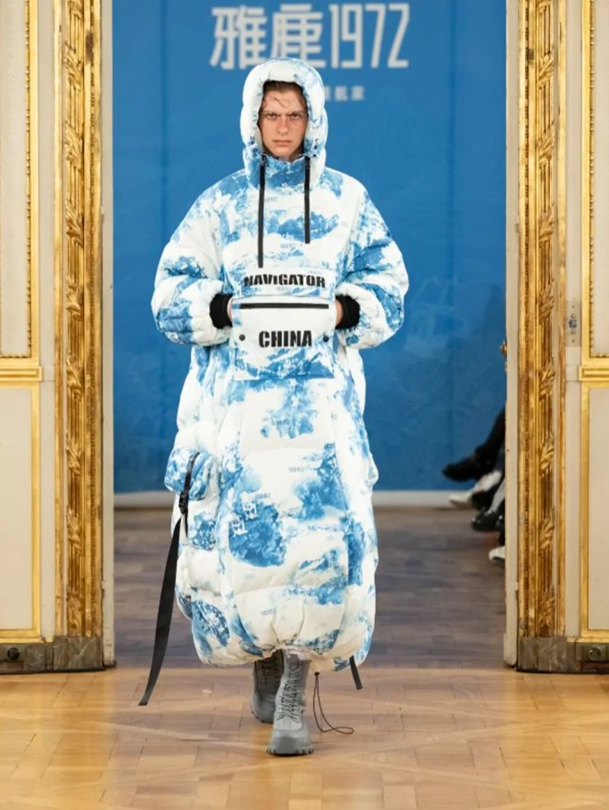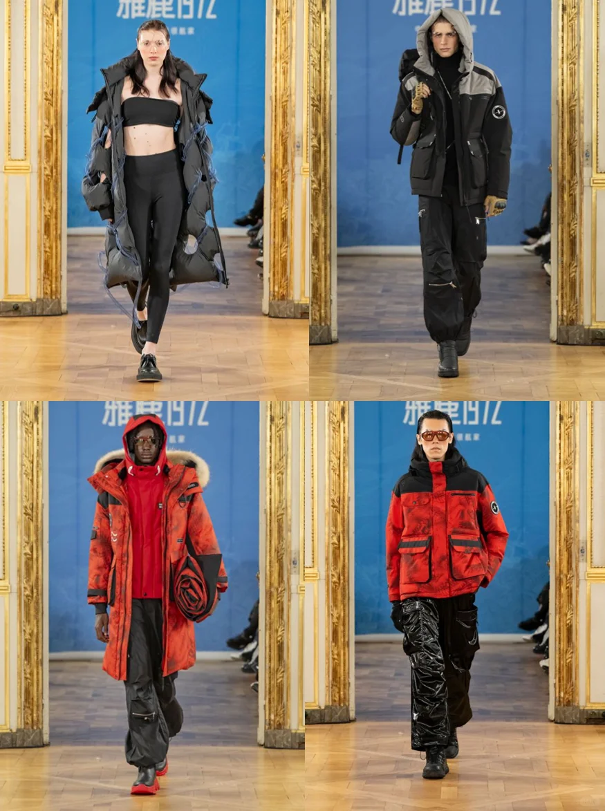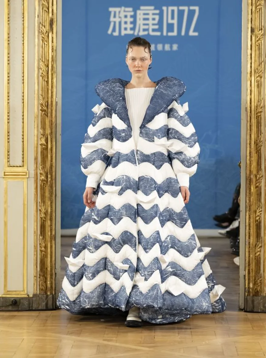 而继2023年雅鹿与屠博文成功出征米兰时装周后,2024年,作为雅鹿高端品质线,雅鹿1972再度联袂中国羽绒服先锋设计师屠博文此次亮相巴黎时装周,延续低调奢感的产品格调,匠心独运,以大师级工艺与美学灵感诠释经典。本次大秀展示的羽绒服均甄选NASA同款面料,具备超强隔温、锁温功能;内里运用陶瓷土滚筒印花工艺,色样持久、牢度高。值得一提的是,本次雅鹿新品大秀灵感来源于“中法建交”及郑和宝船“水密隔舱”,所以在服装设计上添加了“鱼尾裙摆”、“海浪波纹”及“船帆”等及海洋相关的元素将经典设计与新颖的海洋艺术相交融,展现出海洋环境优美的流动感。