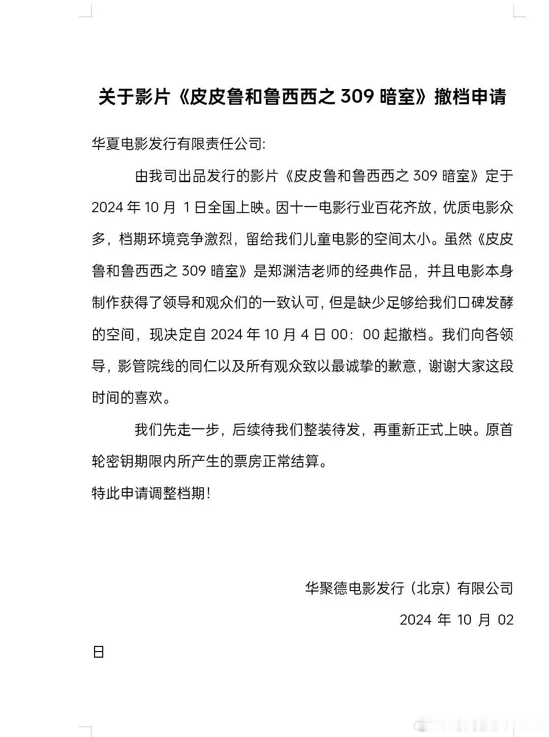 《皮皮鲁和鲁西西之309暗室》撤档,改档跨年