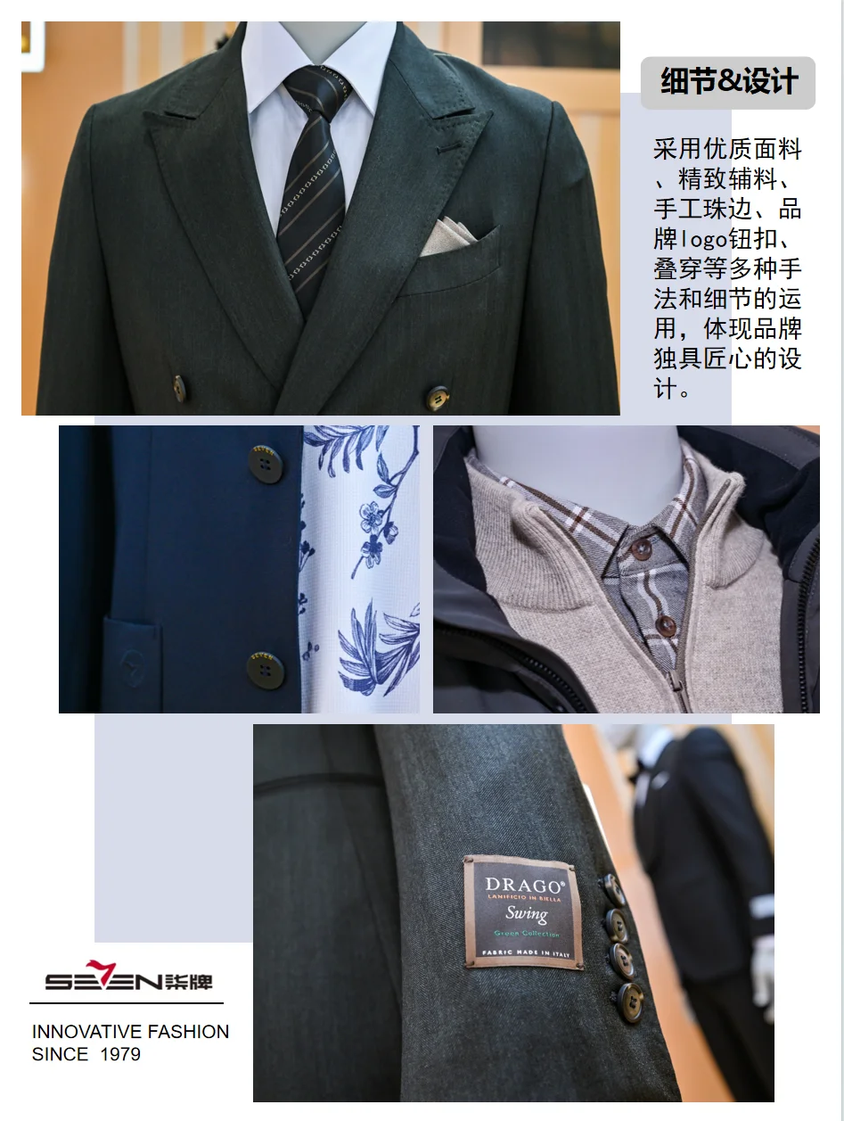 柒牌男装作为中国男装行业的代表品牌之一,在科技创新、品牌年轻化和新中式设计三个领域均表现卓越,为行业树立了典范。