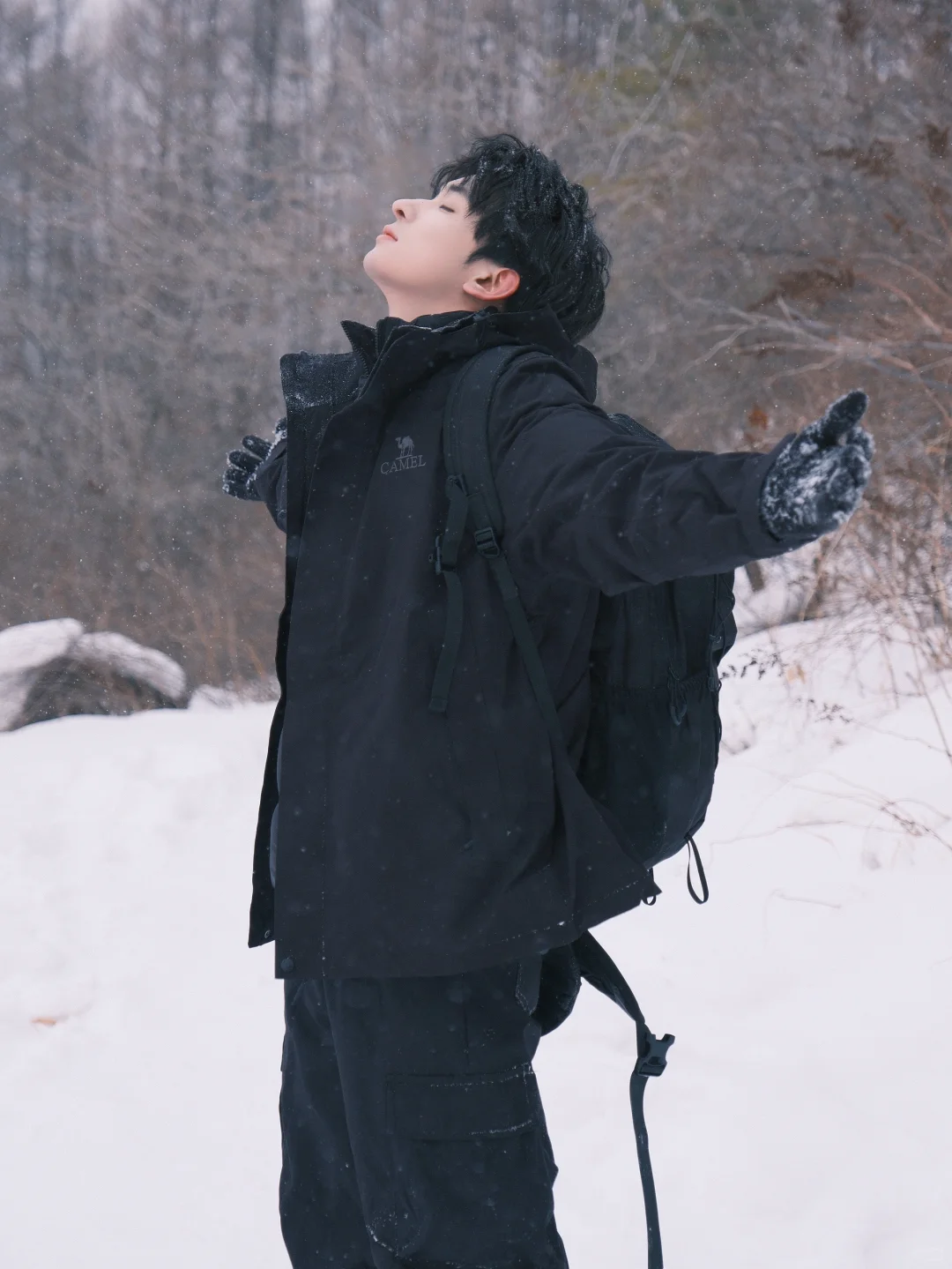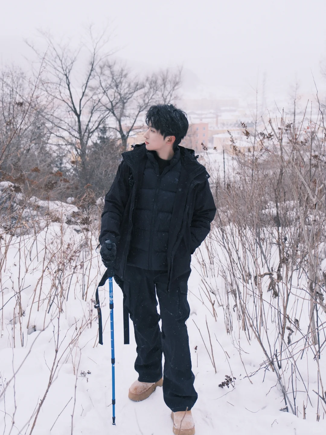雪乡+黑色冲锋衣的氛围感真的很绝