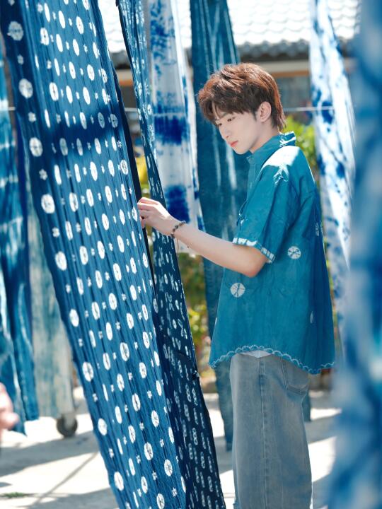 把扎染的蓝天白云穿在了身上