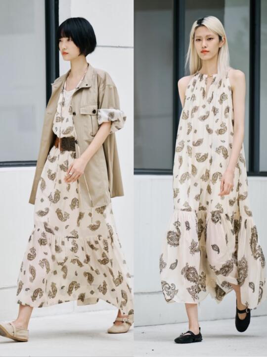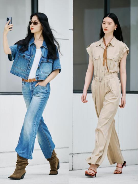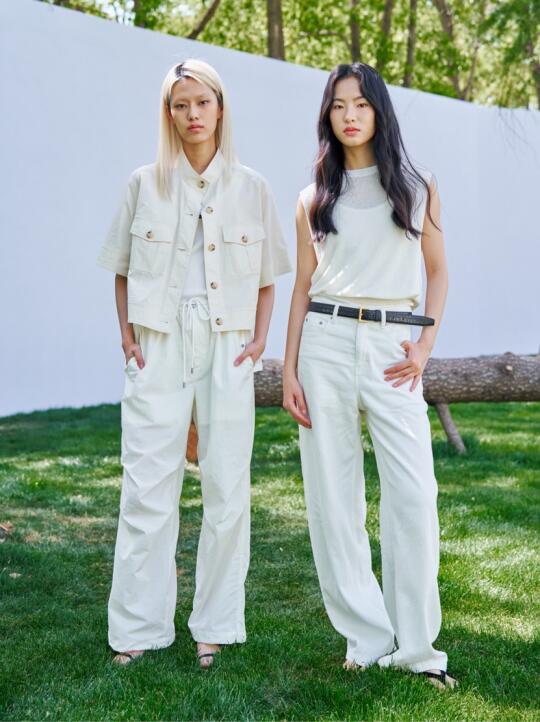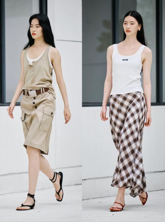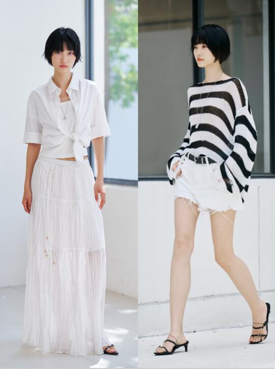 要说MO&Co.25春夏系列,无论颜色与款式都是可圈可点,亮点满满的!以白色为主旋律,卡其、米杏等中性色贯穿其中,白色T恤搭配同色系宽松阔腿裤尽显慵懒松弛氛围。卡其色背心搭配同色系工装半裙,打造酷帅干练的时髦都市风。而牛仔丹宁的整套穿搭率性松弛的氛围感轻松拿捏!飘逸的碎花连衣裙与半透网纱的百褶半裙性感迷人,游走于都市与海边的法式浪漫风情。另外,格子、条纹等元素的加入和皮腰带、飘带等精致细节的点缀,无不洋溢着属于夏天的满满活力氧气感!