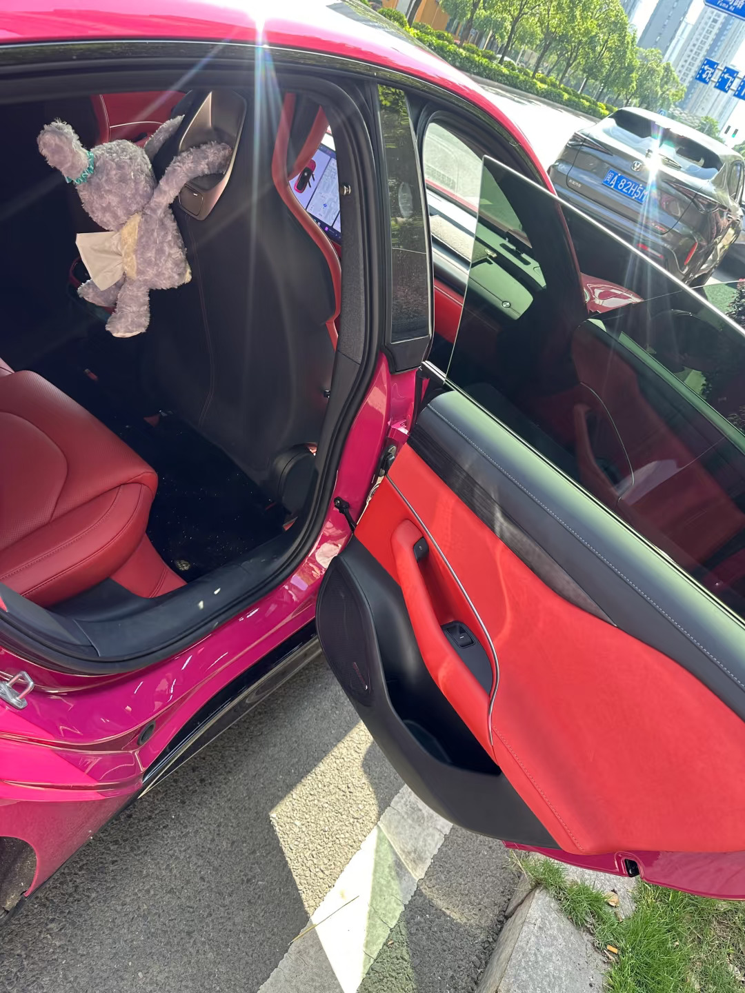 提车一个月了,外洋红内暮光红,真的太漂亮了