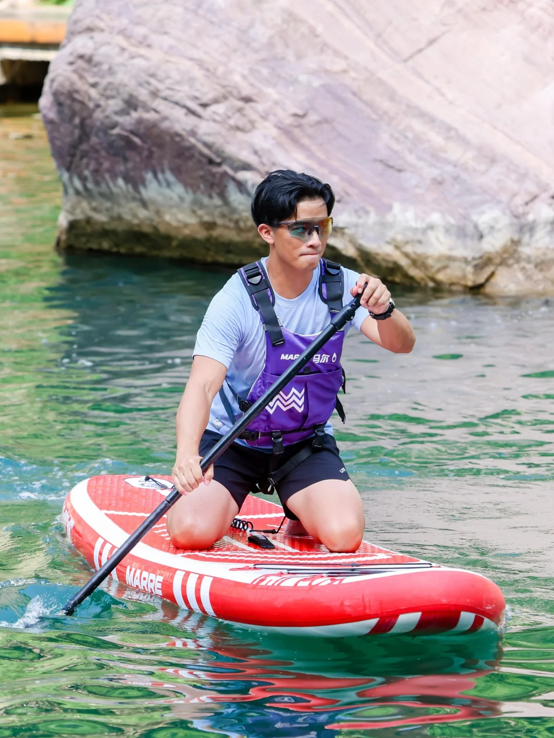 ⛵️没想到大山里也能开启入水模式,说好今天要保持一天的干爽,但还是落水了,不过不落水就不是完整的体验了,虽然面上30多度,河水倒是透心凉的清爽… 夏天来这里可以体验的水上项目还真不少,还有诗下次带全家一起来玩才好!