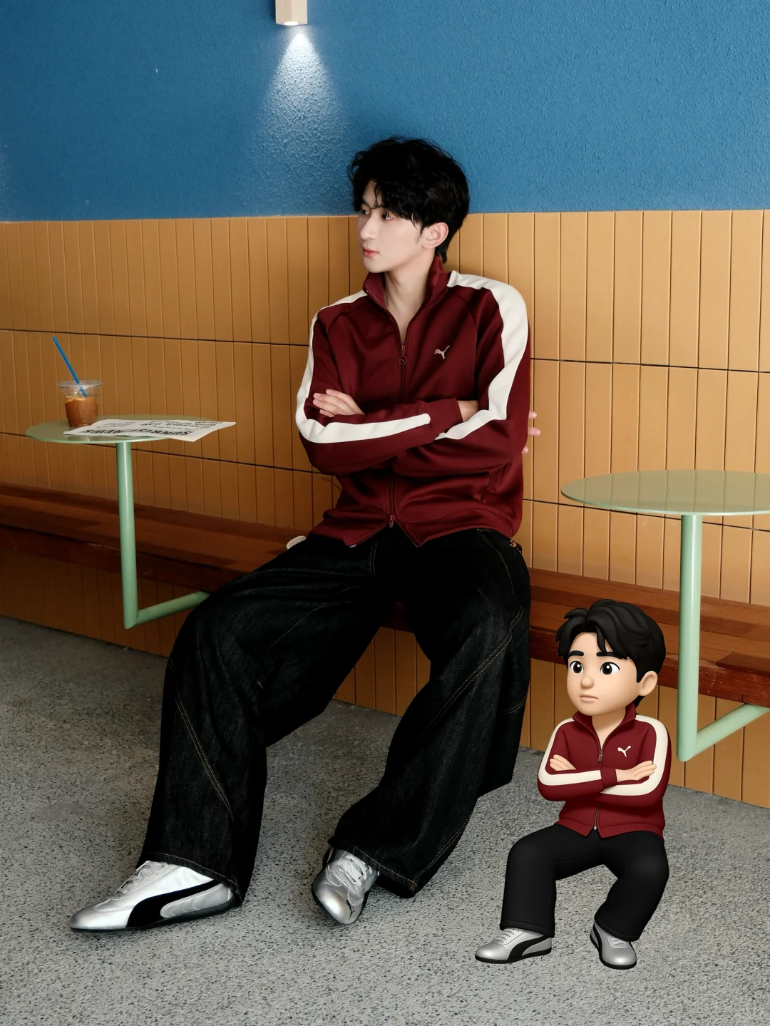 PUMA T7真的就是复古运动风的代表。松弛的剪裁+Speedcat薄底鞋,它最早其实是为运动员设计的训练套装,袖子和裤腿上的那条7cm标志性条纹,从绿茵场到街头,7cm条纹始终是复古的代名词。复古、松弛,但又不会过度用力。这份氛围感,才是OOT7的态度✔