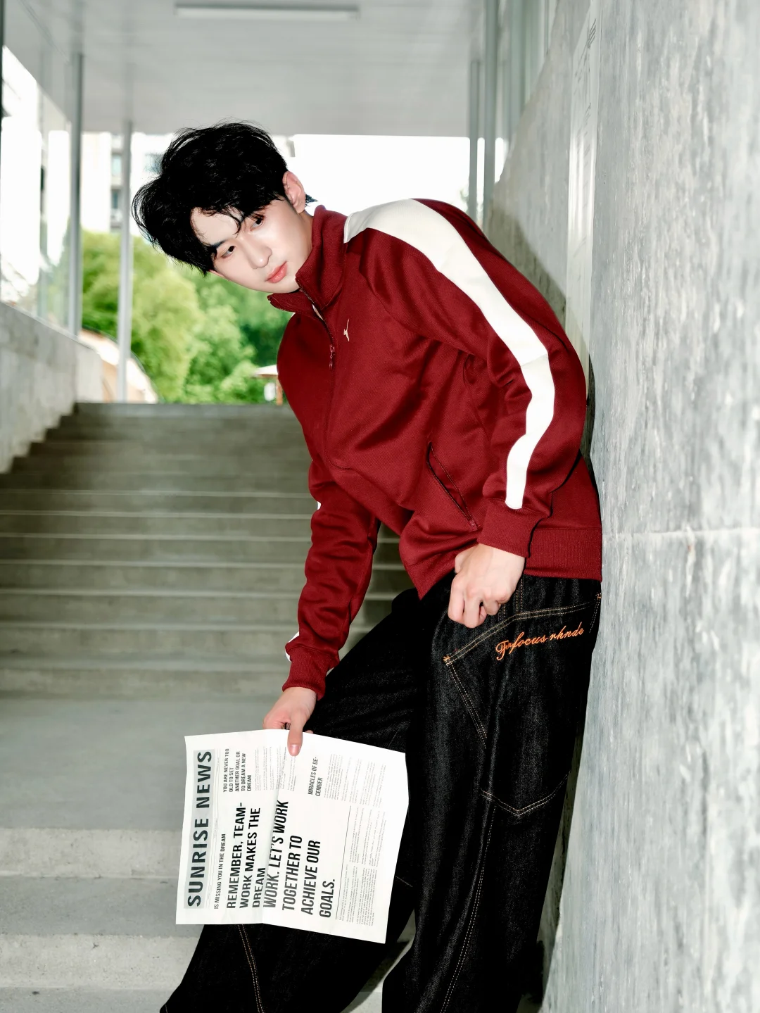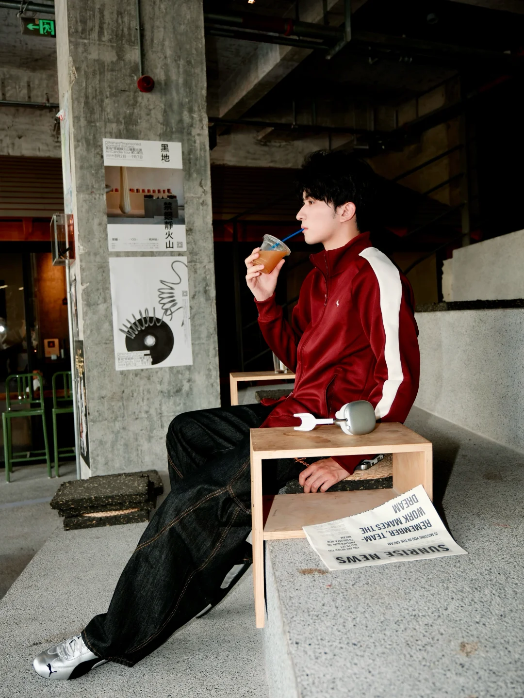 顺手拿起一份报纸坐在路边📰