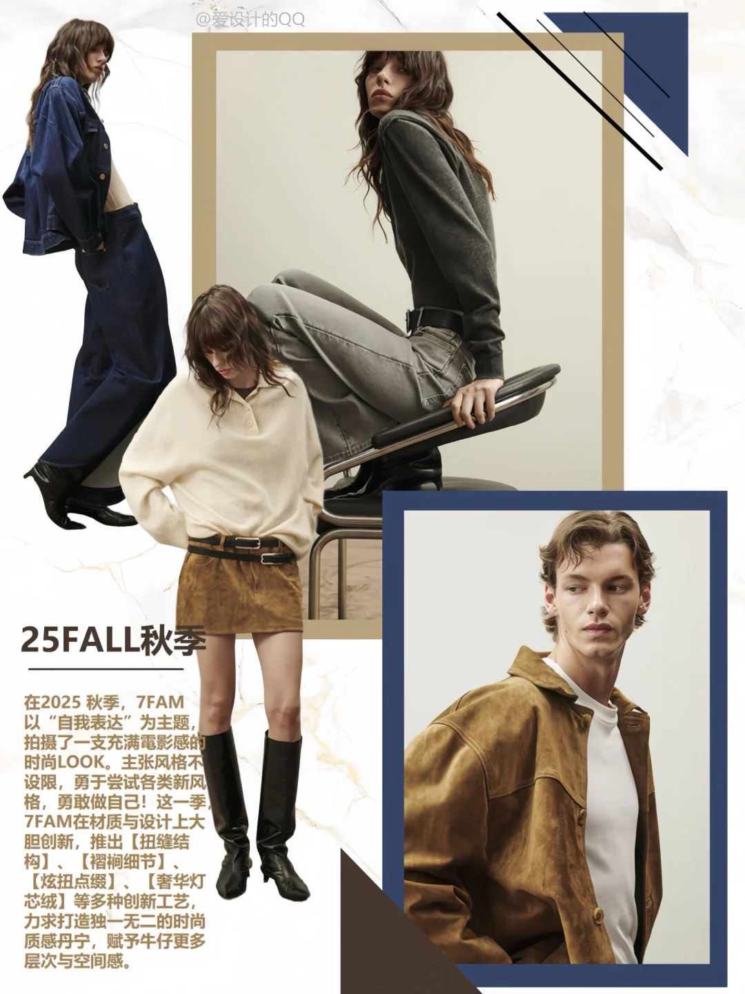 在2025 秋季,7FAM 以“自我表达”为主题,拍摄了一支充满電影感的时尚LOOK。主张风格不设限,勇于尝试各类新风格,勇敢做自己!这一季,7FAM在材质与设计上大胆创新,推出【扭缝结构】、【褶裥细节】、【炫扭点缀】、【奢华灯芯绒】等多种创新工艺,力求打造独一无二的时尚质感丹宁,赋予牛仔更多层次与空间感。