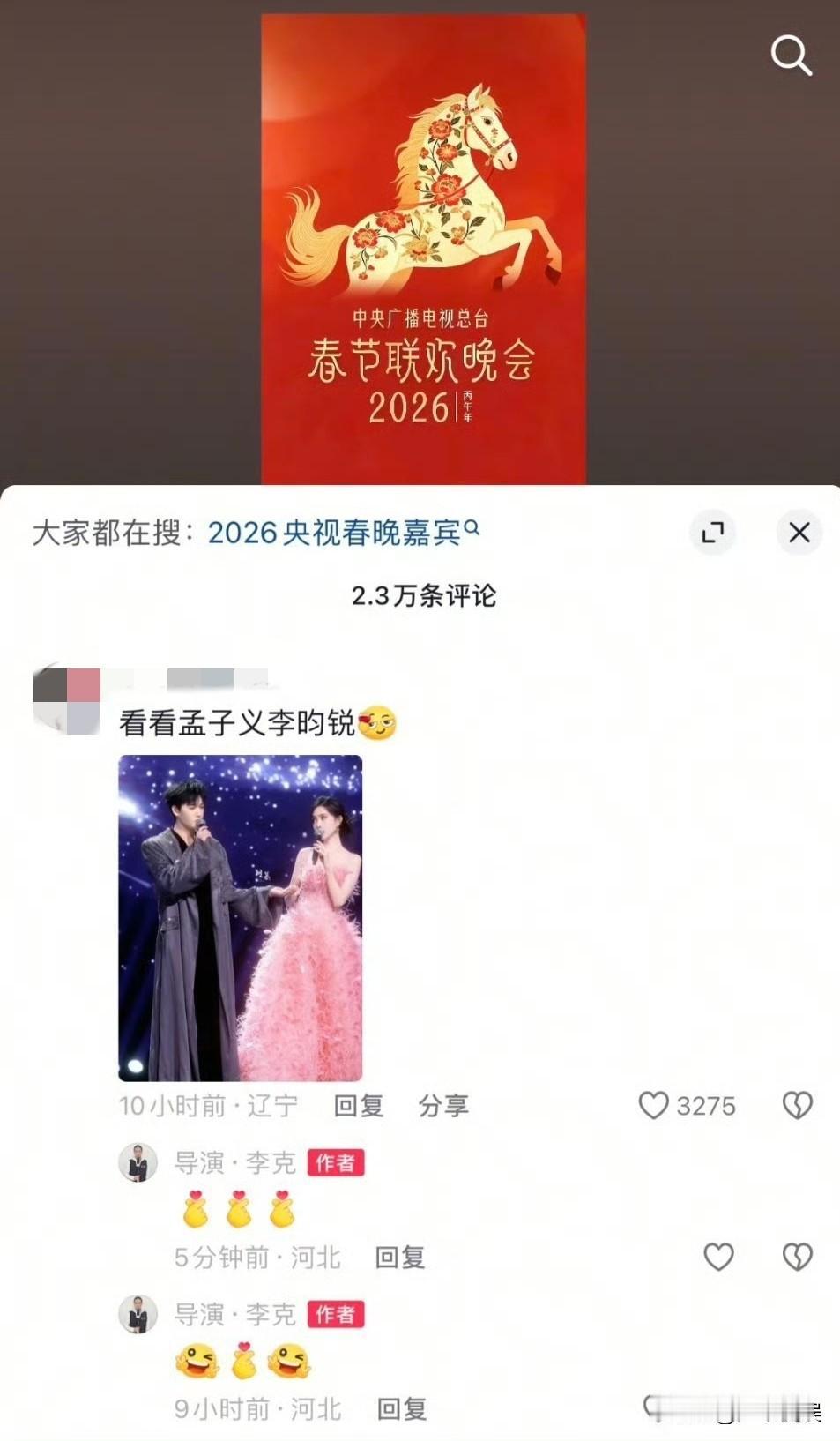 本来只是粉丝的许愿,没想到导演李克真的回复了他们的粉丝,虽然只是表情包,但是却回复了两个不同人,这俩人都是推荐李昀锐和孟子义的。