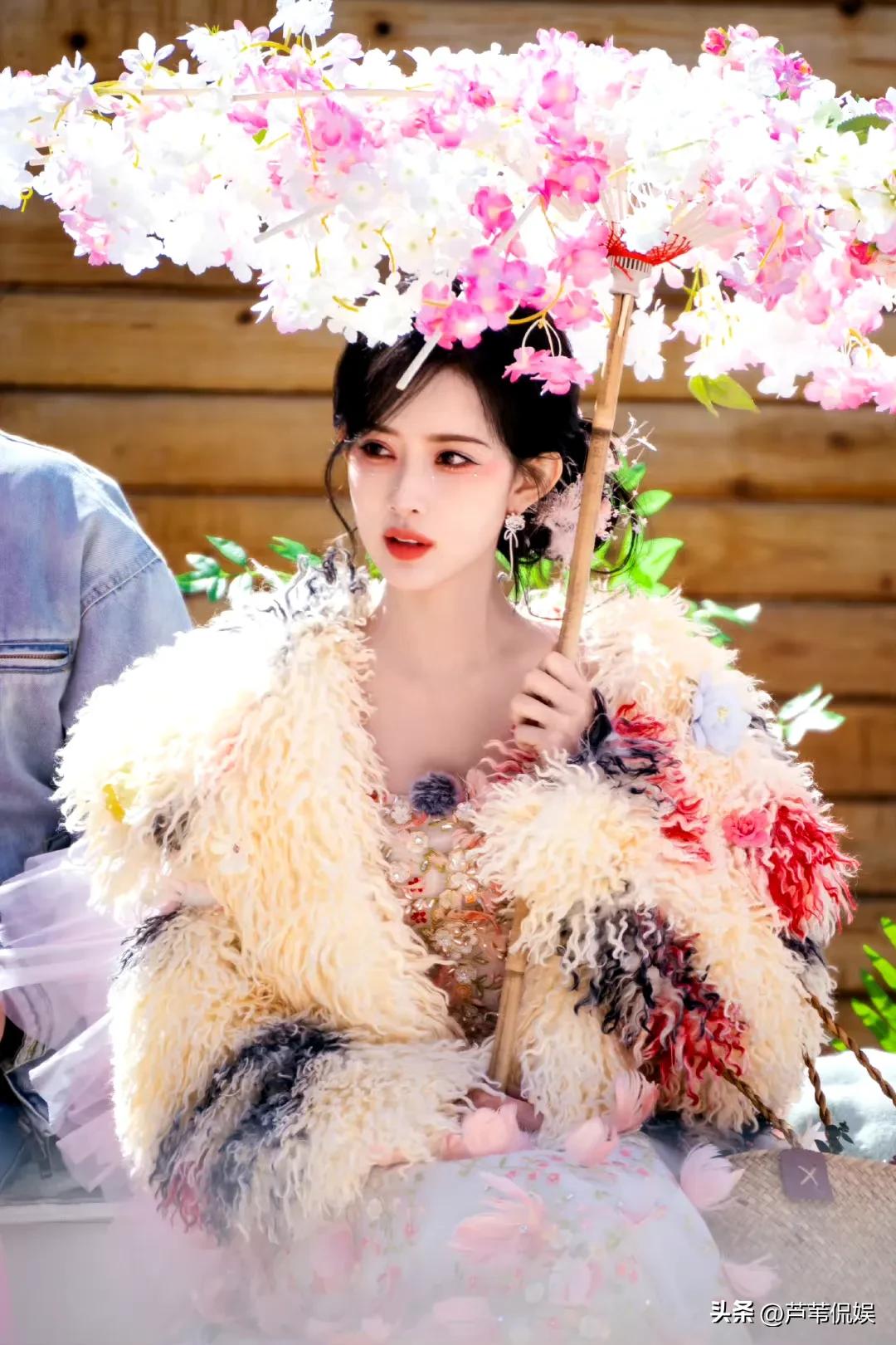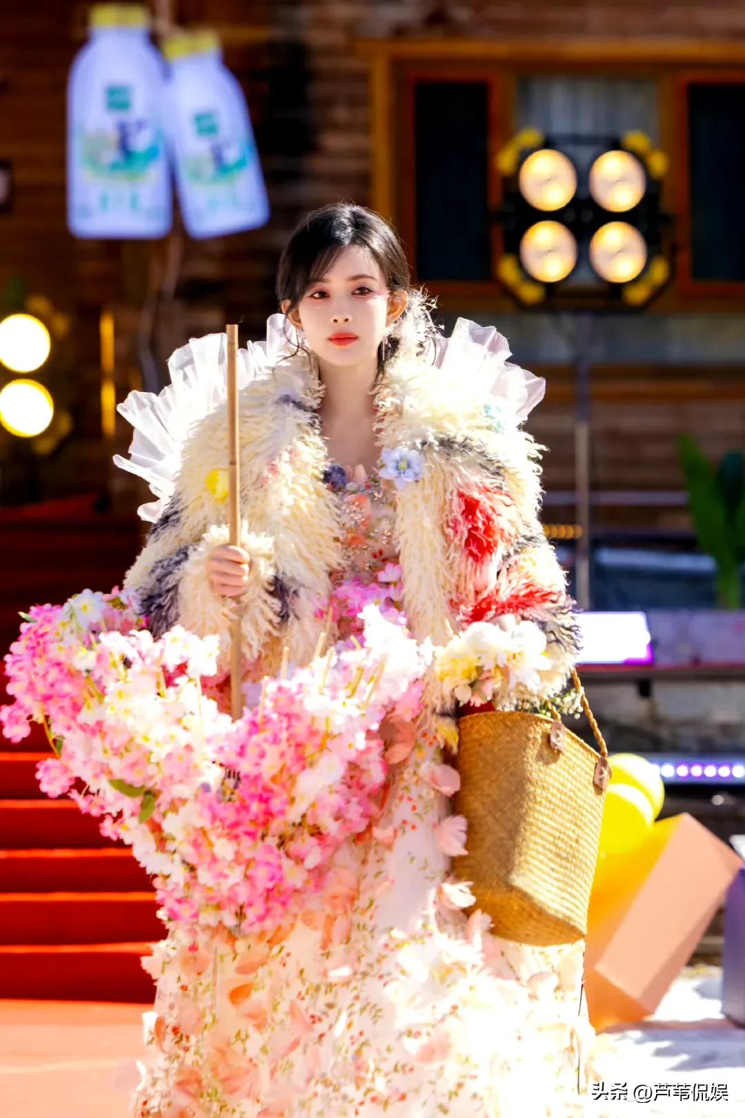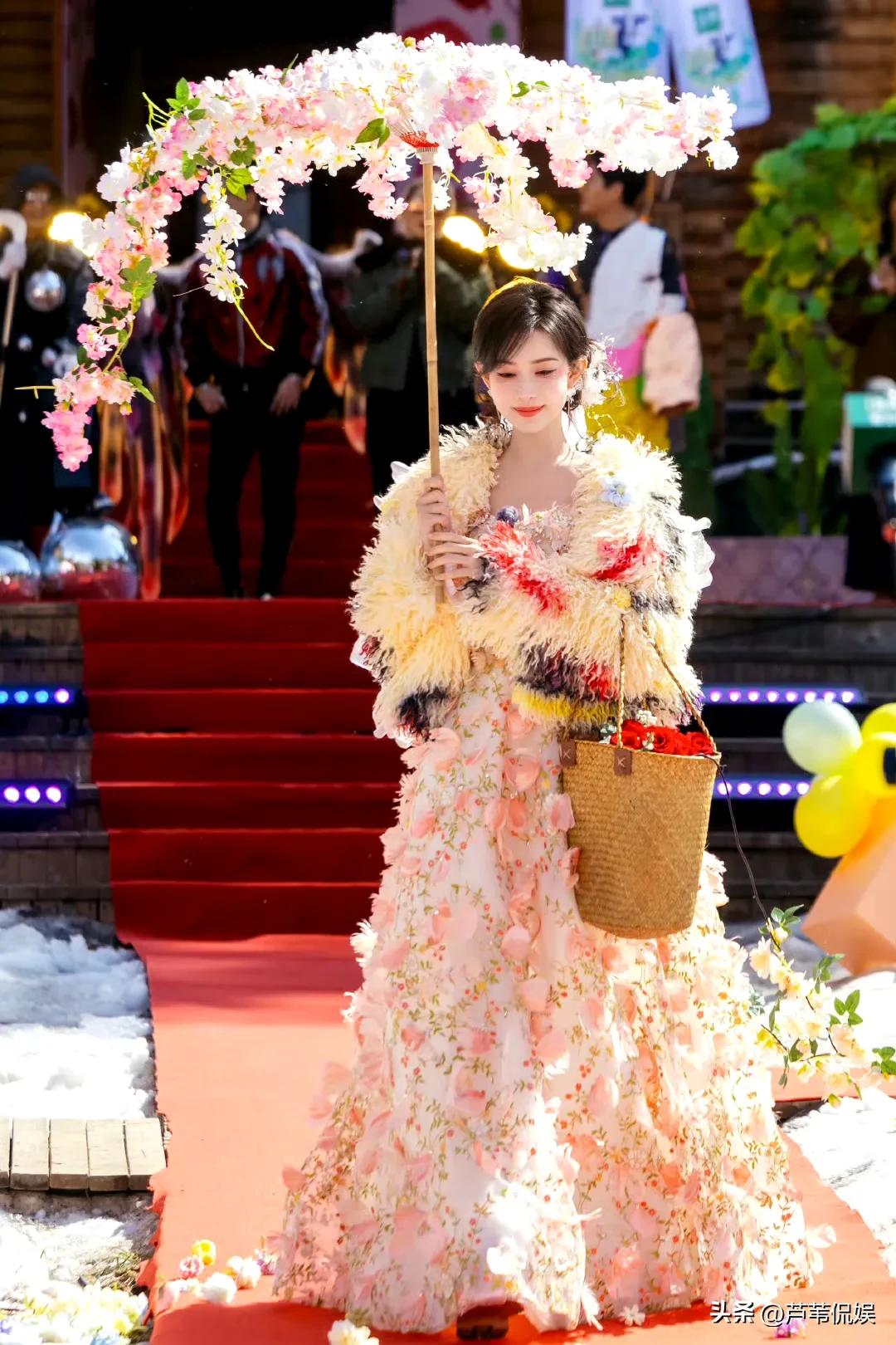 看着明艳的孟子义穿着好看的花裙子,撑着一把由花朵组成的伞缓缓走来,直接美到大家心坎上了。
