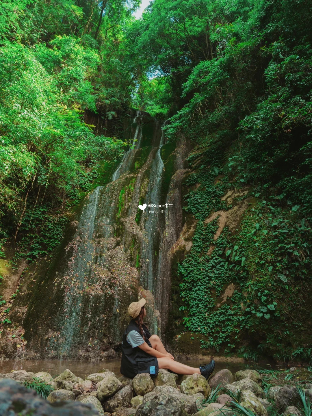 🗺️路线:跟着地图至竹林入口,徒步5min便会到达小水潭。溯溪全程都有树荫遮挡,不用担心被晒!去瀑布需要攀过2处很陡的石坡,注意安全哦~