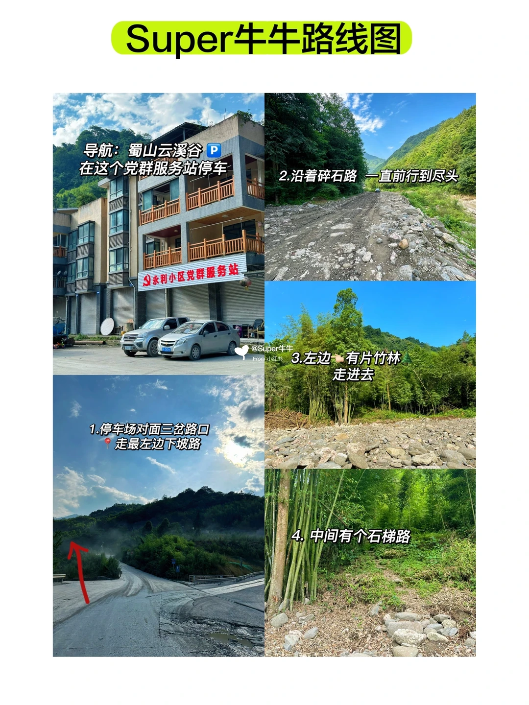 🅿️停车:车停在终点处的【党群服务中心】坝子后步行前往~停车场对面是三岔路口,记得走最左边下坡路!前行约600米在路尽头,会看到左边有片竹林,跟着中间石梯走就对了!