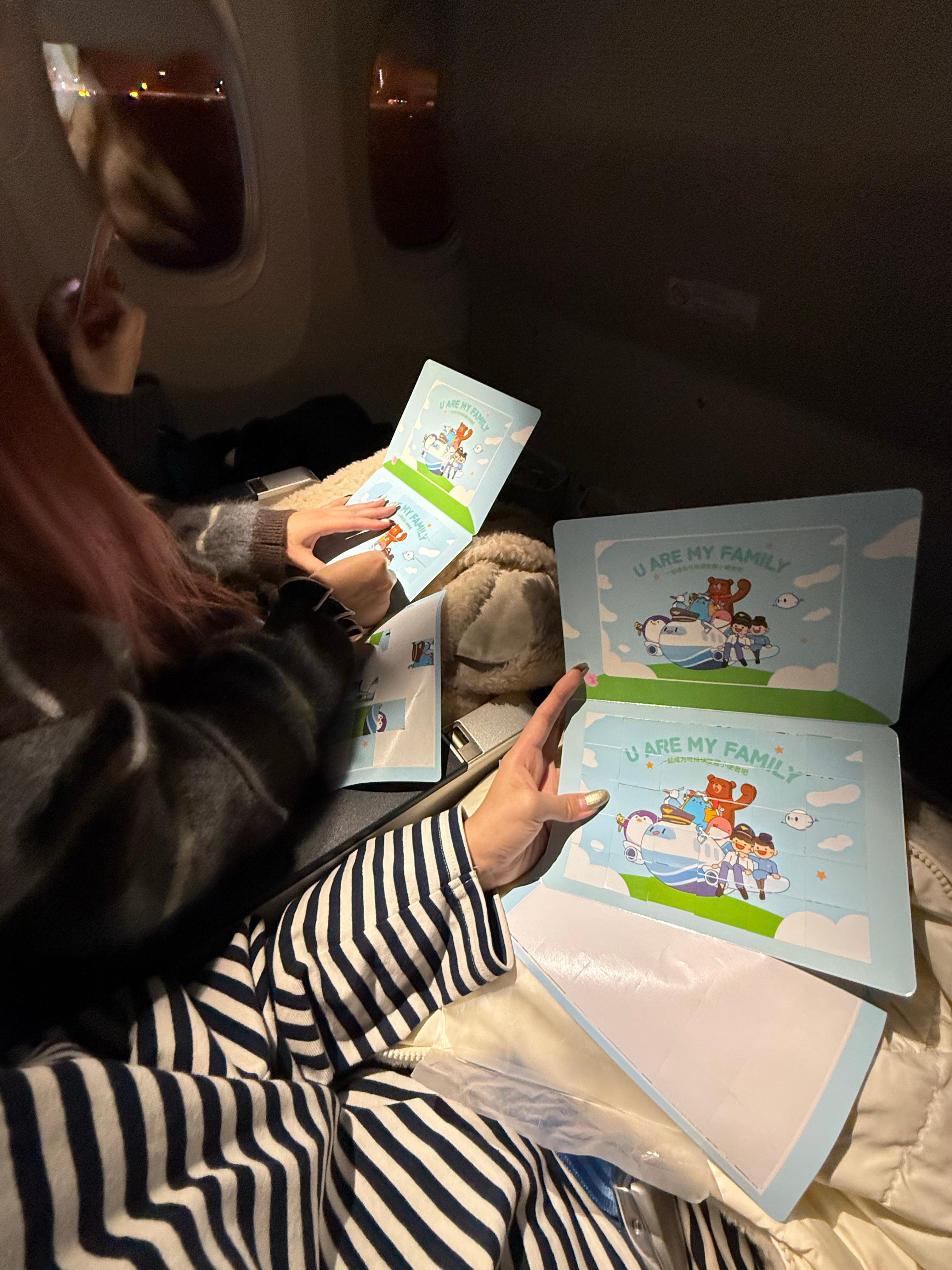 偷拍老板还被老板偷拍回去的很吵闹路程如何做到安静🤫空姐给我们三个个人发了拼图?