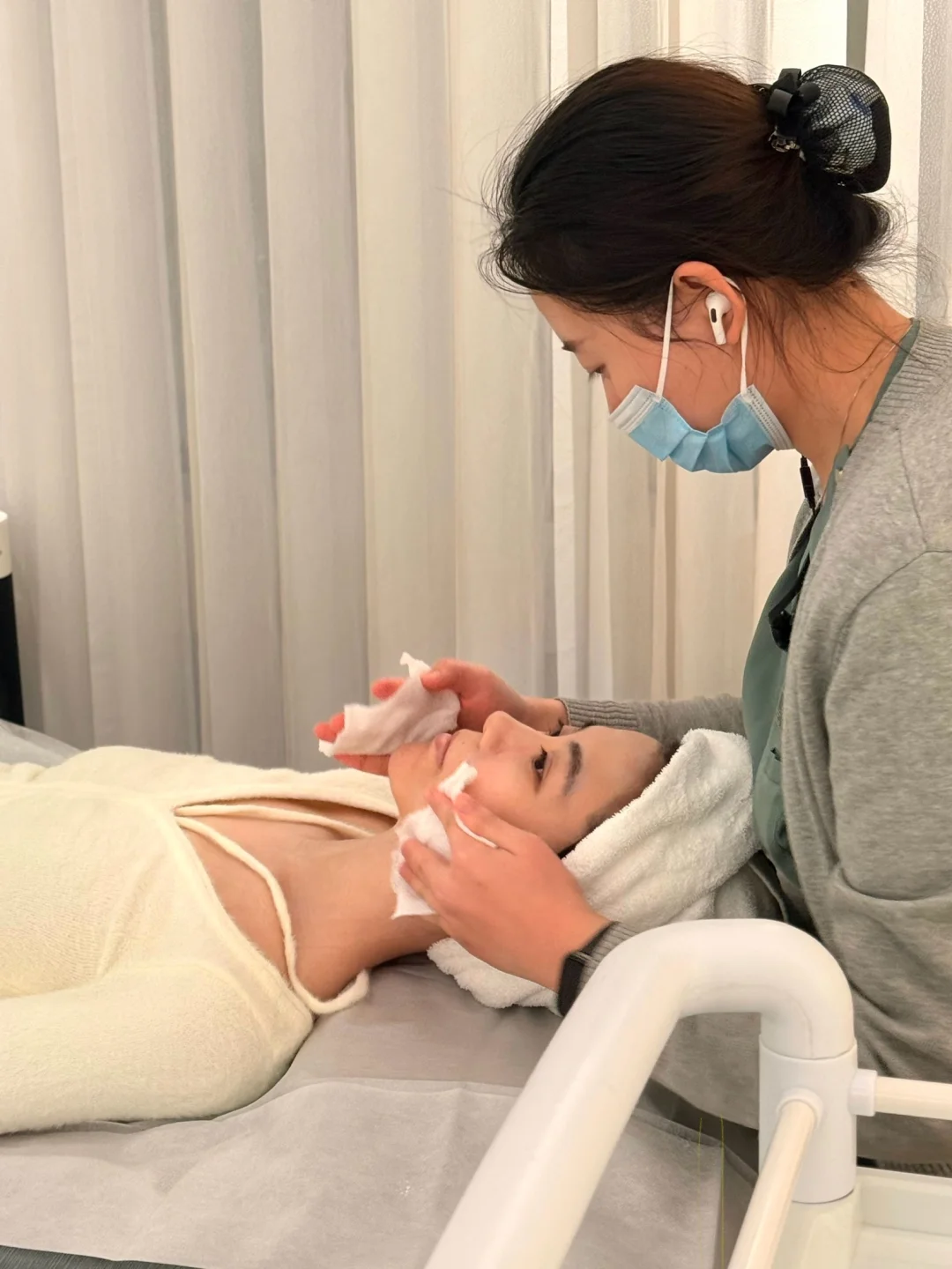 操作前会敷一层厚冷凝胶,全程只有温温的感觉,没有刺痛感,小姐姐手法很轻柔,会根据皮肤耐受度调整操作节奏,重点照顾容易泛红的脸颊。当场敷上冷敷贴,凉丝丝的很舒服,刚好缓解干燥感~[哇R]