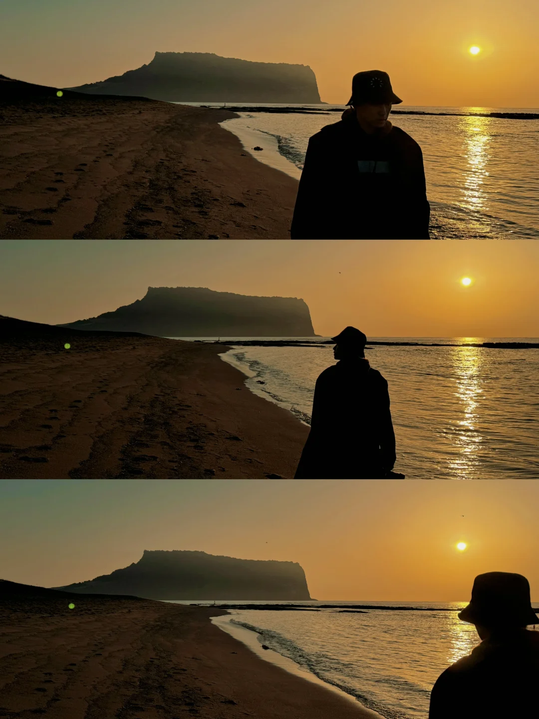 清晨沿着海边油菜花朝着日出峰走去,看着太阳一点点从海面升起