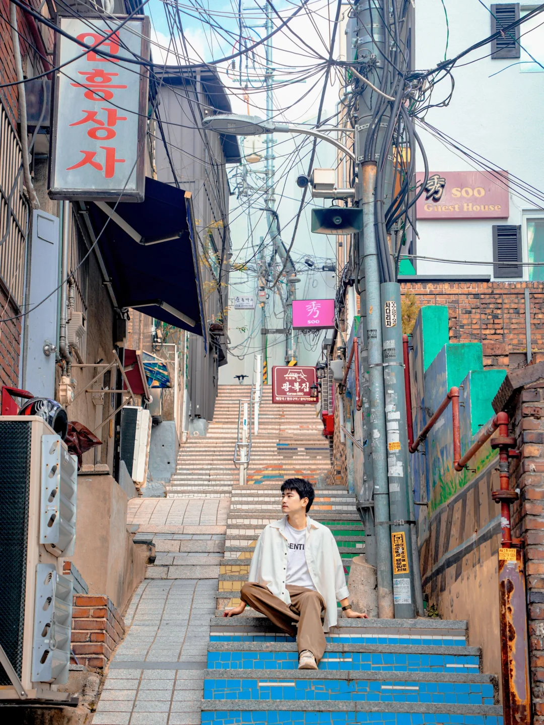 1️⃣一定要穿双舒服的运动鞋,首尔的坡很多,阶梯也很多,很像重庆