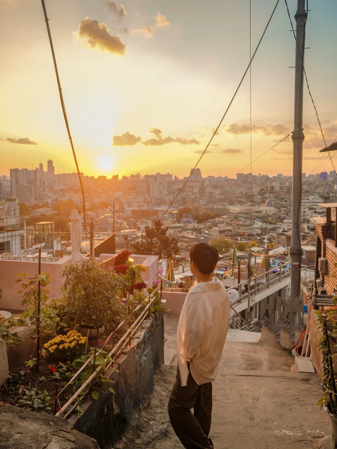 在半山腰的山城步道里看首尔的日落真的很浪漫