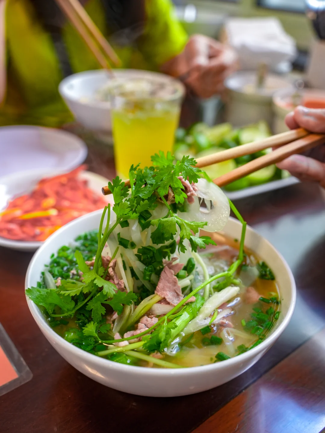【Phở 10】的半熟牛肉粉,和【PHO GA NGUYET】的鸡翅粉都值得一试,离得很近