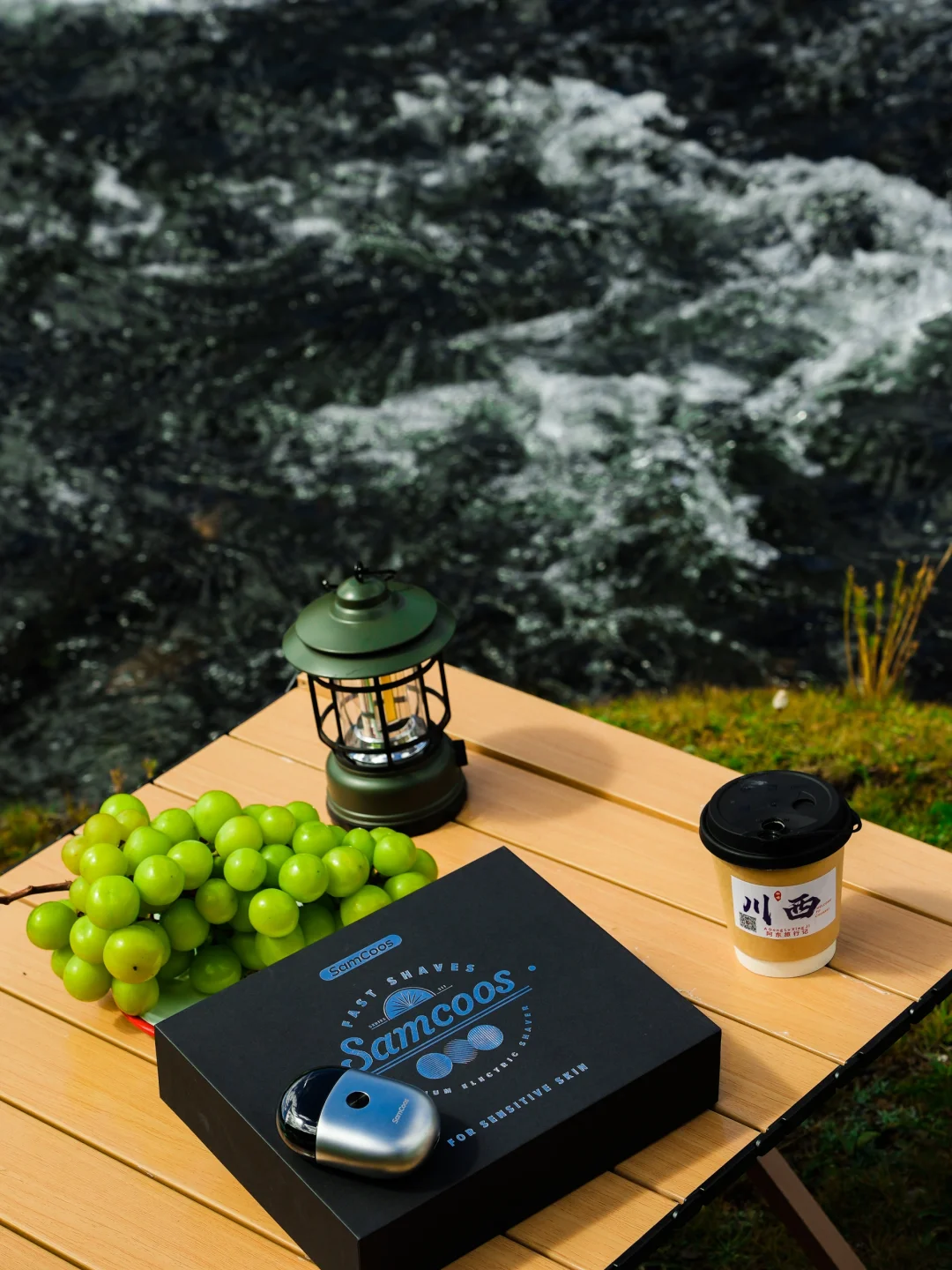 我把自带的露营桌椅拿出来摆在溪流边,摆上了水果和零食,就可以开始瘫着享受时间