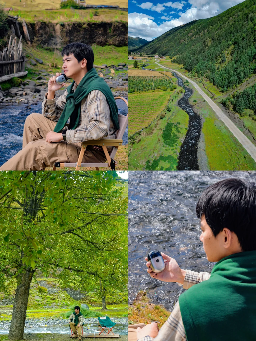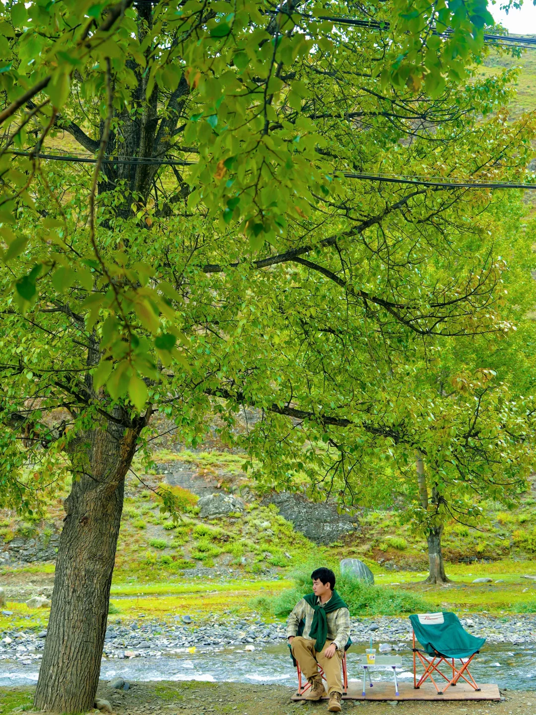 很合适拿出露营桌椅来休闲,在溪流边晒着太阳喝下午茶