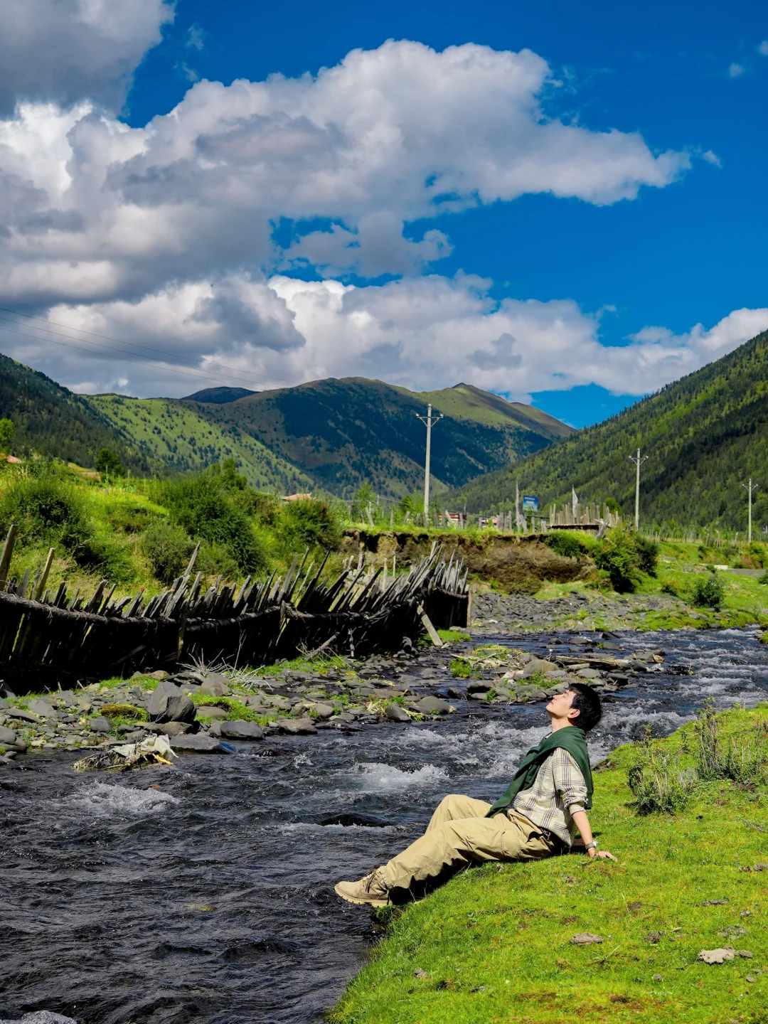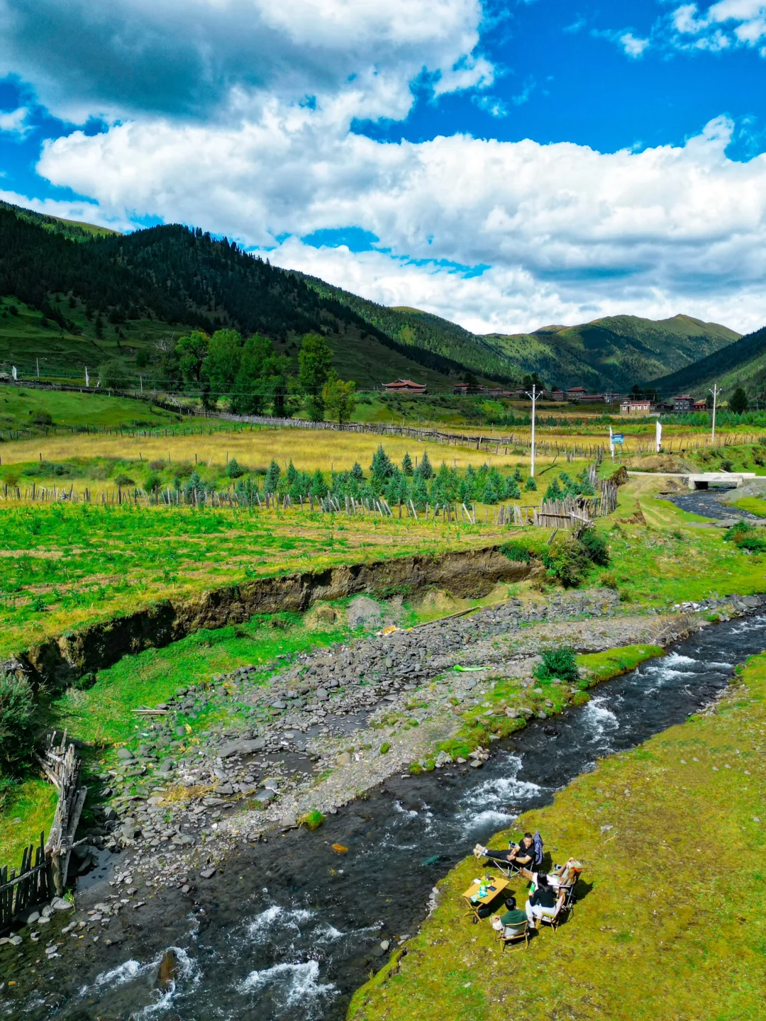 这里有家网红民宿【松顿尼吉】,占据的位置很好,也有在溪流边搭好的天幕和桌椅