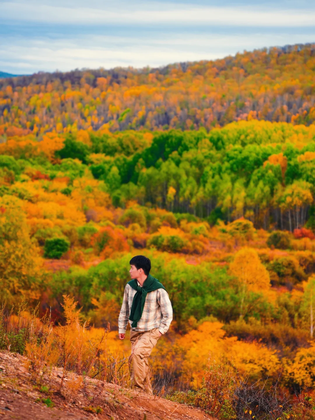 秋天来呼伦贝尔还是要毛衣+厚外套的,想要穿轻薄点拍照好看的话,一定要穿保暖内衣!