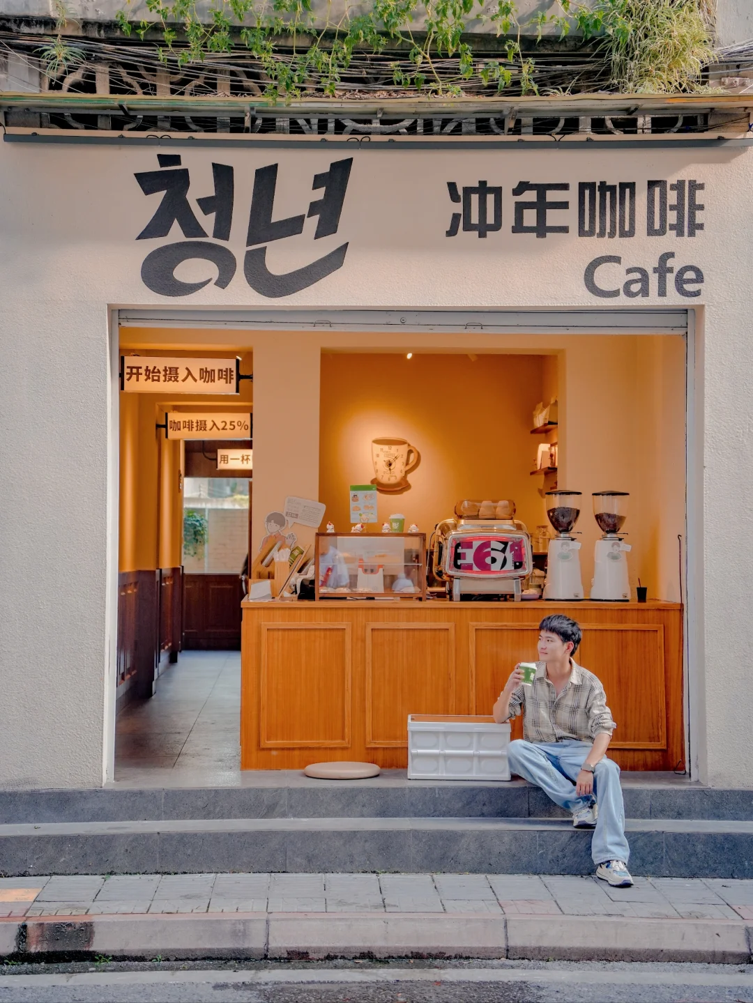 韩国帅哥欧巴开的韩式咖啡店,在老小区楼下,有一个院子超舒服,氛围感满满