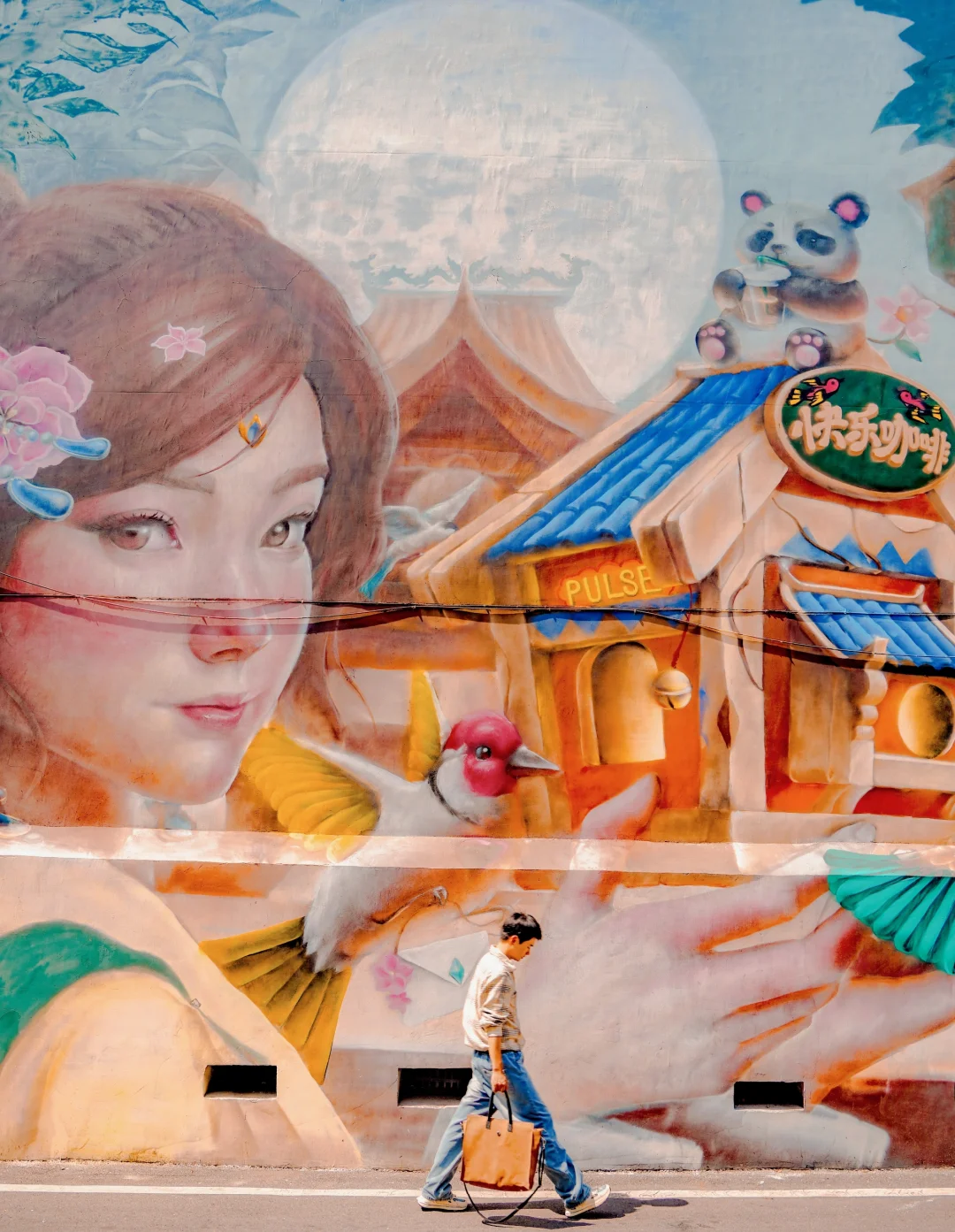 这应该是绵阳zui文艺和chill的小巷吧,一条巷子里有可爱的涂鸦墙