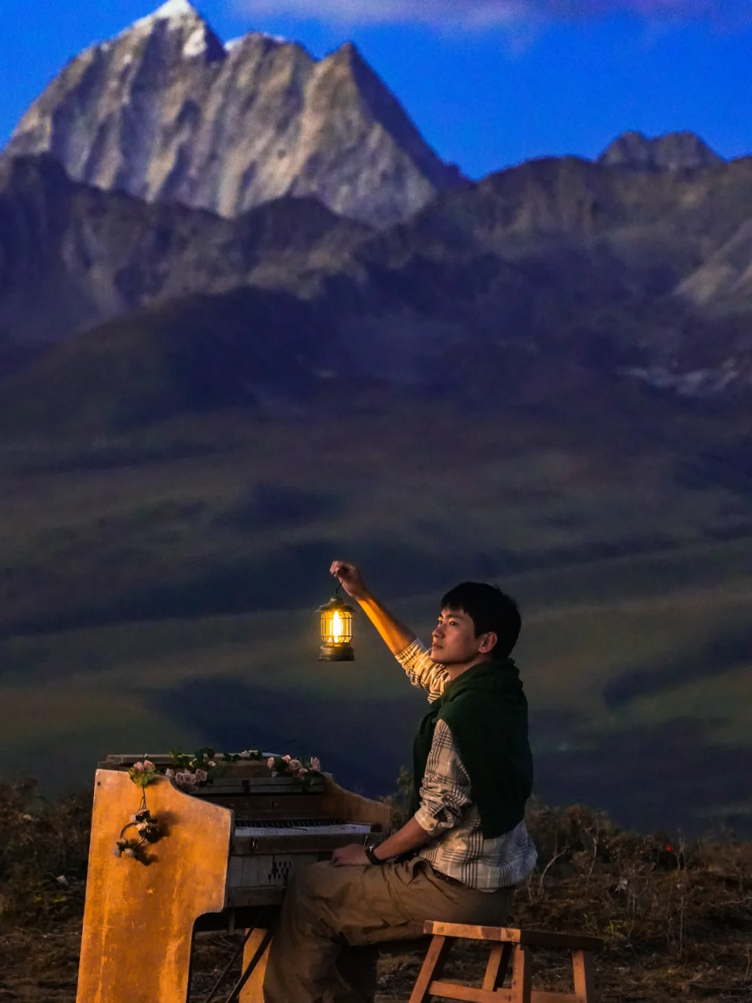 我提着小灯朝雪山走去,就像走进了油画里的世界