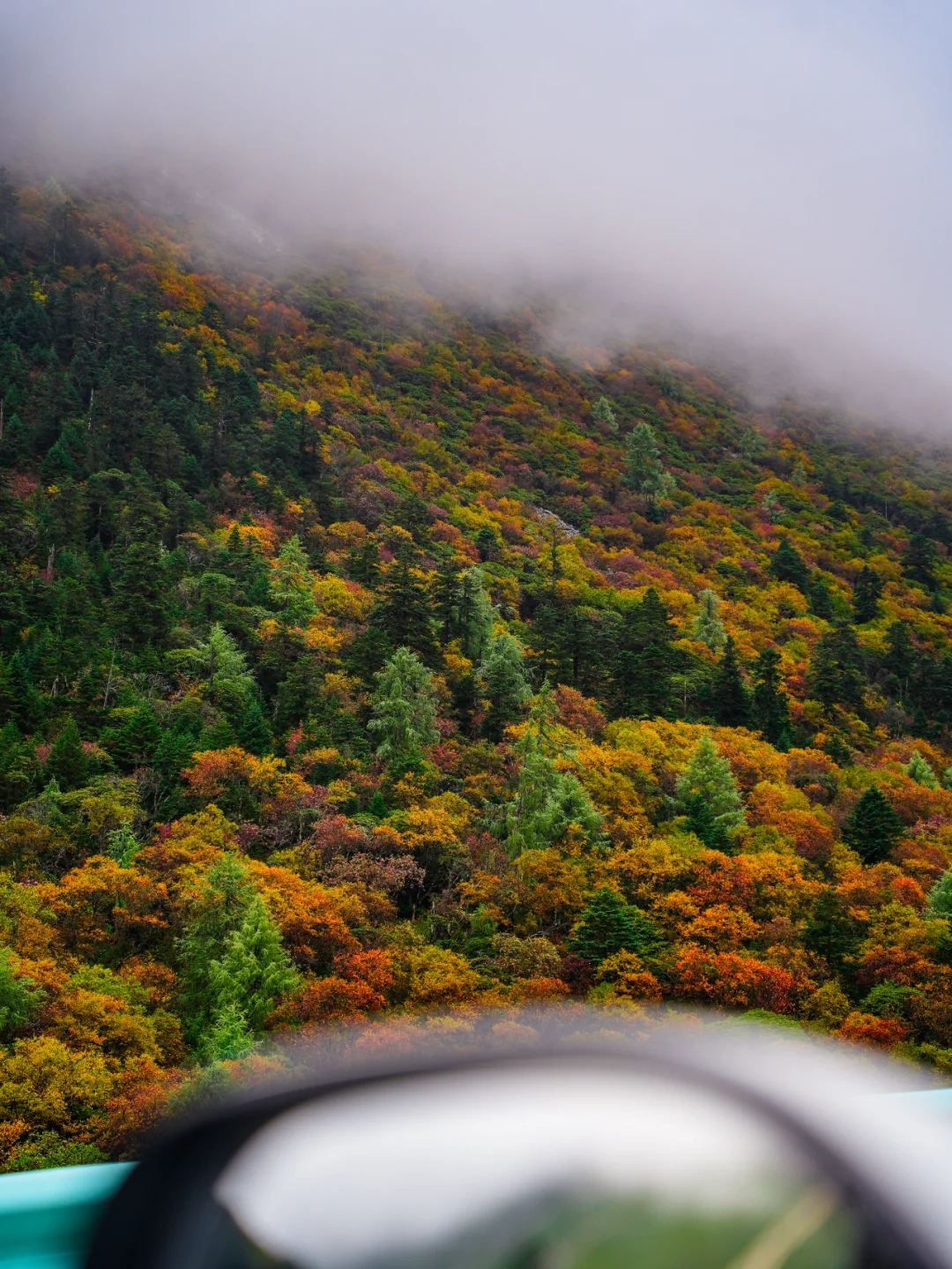 到达康定后,开始翻越折多山,这时候折多山上开始有了秋意,出现了彩林