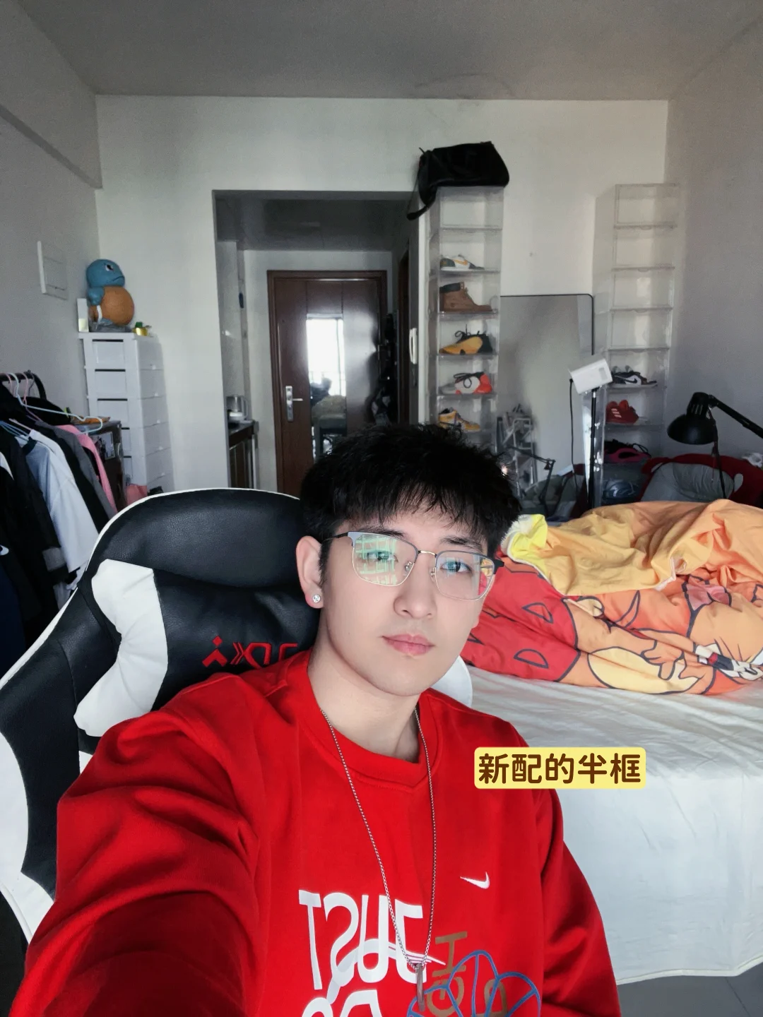 可能是我自己看惯了黑框,新配的半框其实不太受宠,我觉得好像没那么好看。但是这几天被夸戴半框好看的频率有点高了,我要重新审视它了哈哈