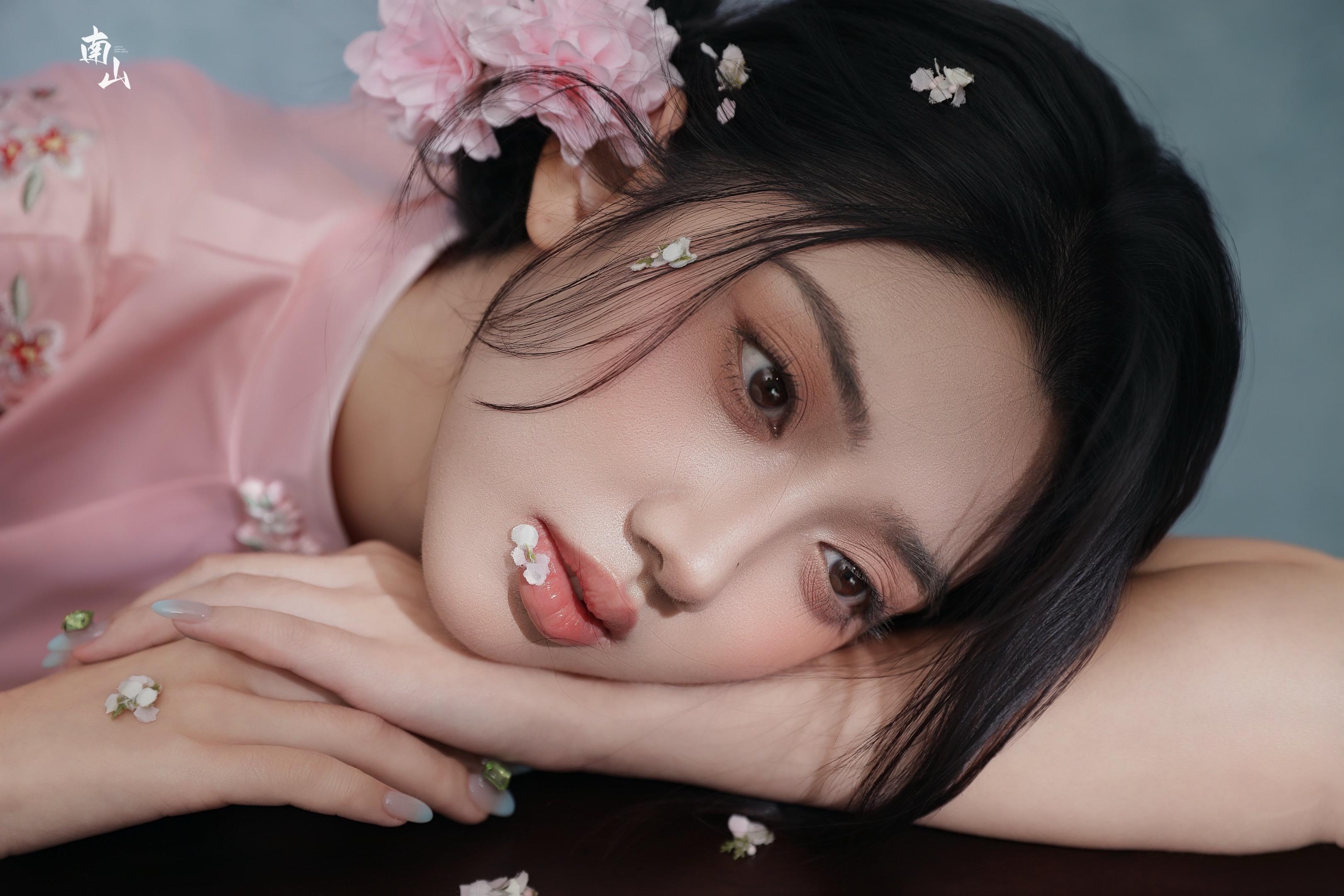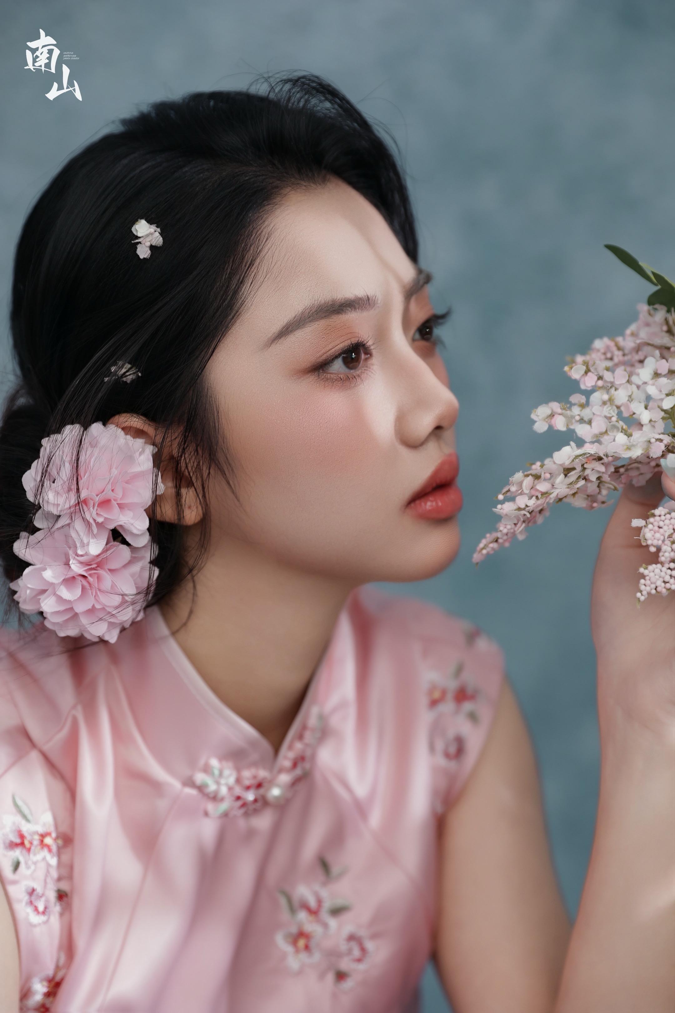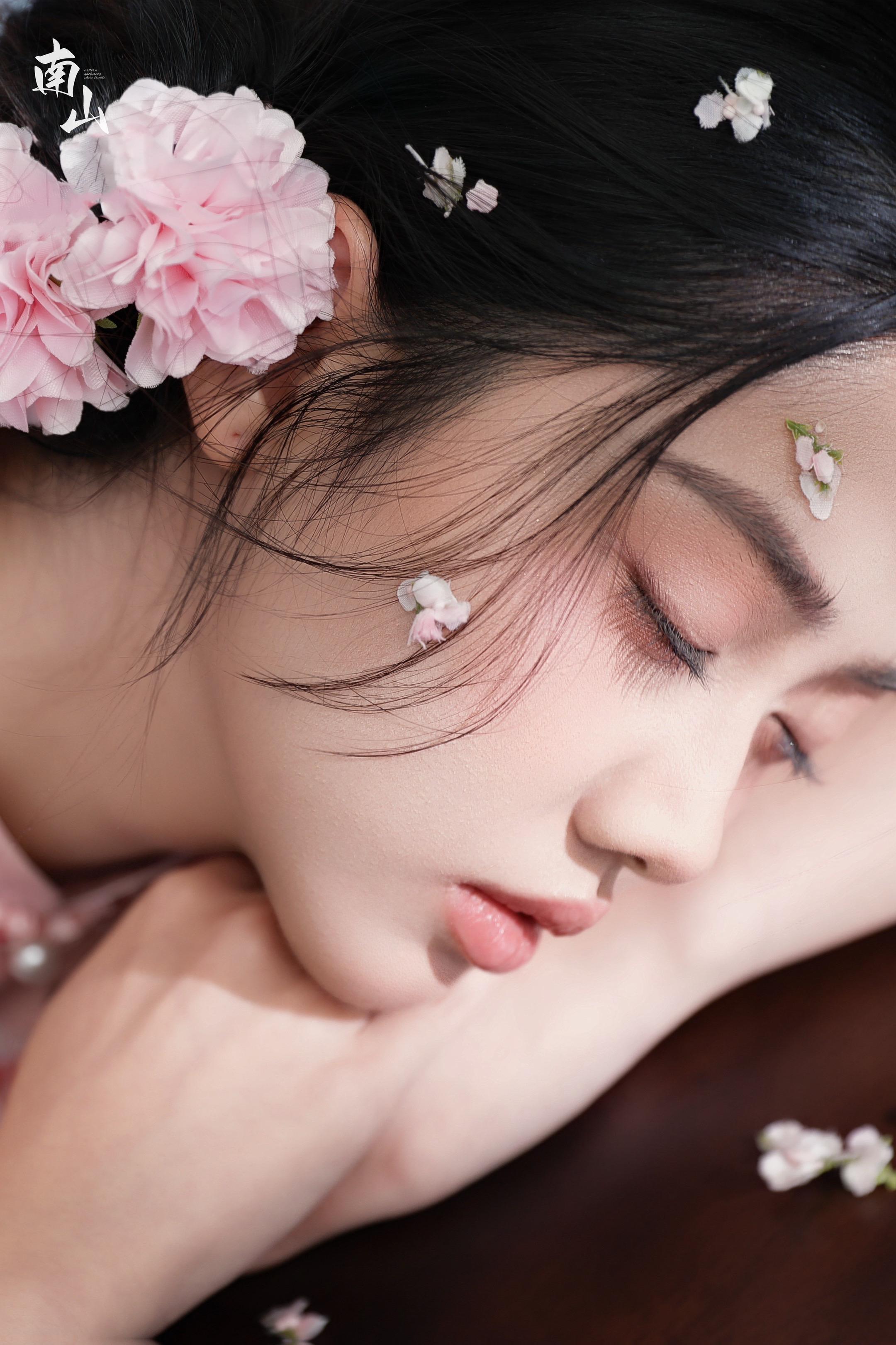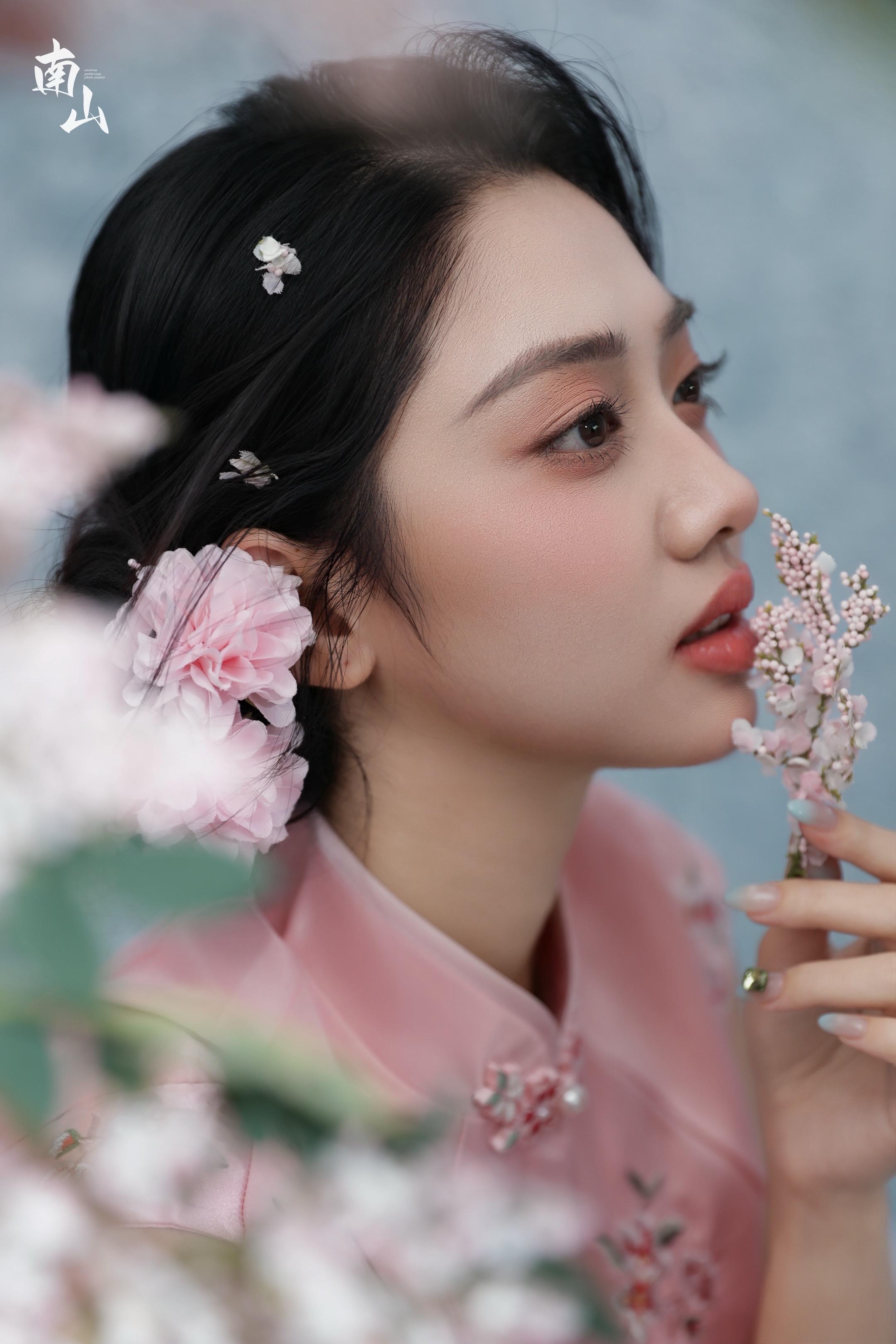 粉黛染春色,山茶卧东风。