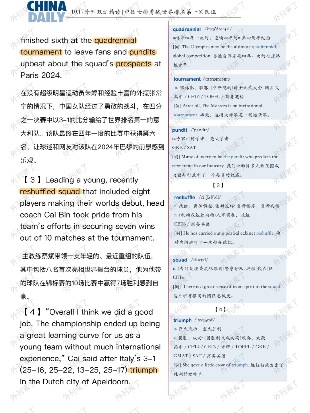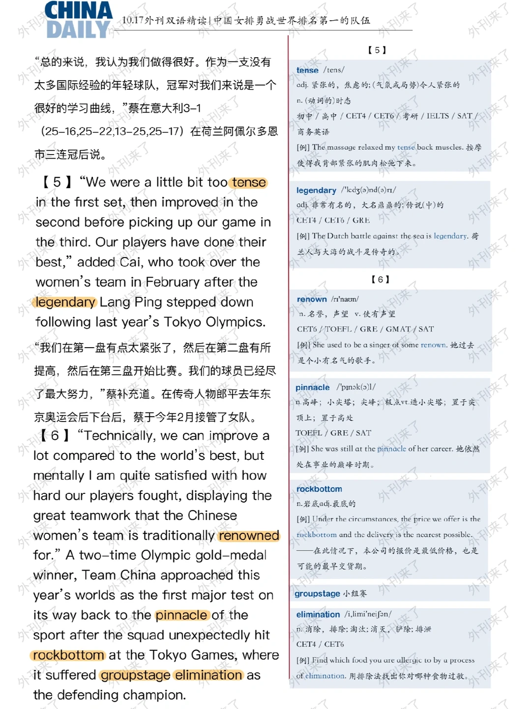 外刊双语精读16|中国女排勇战强队🇨🇳