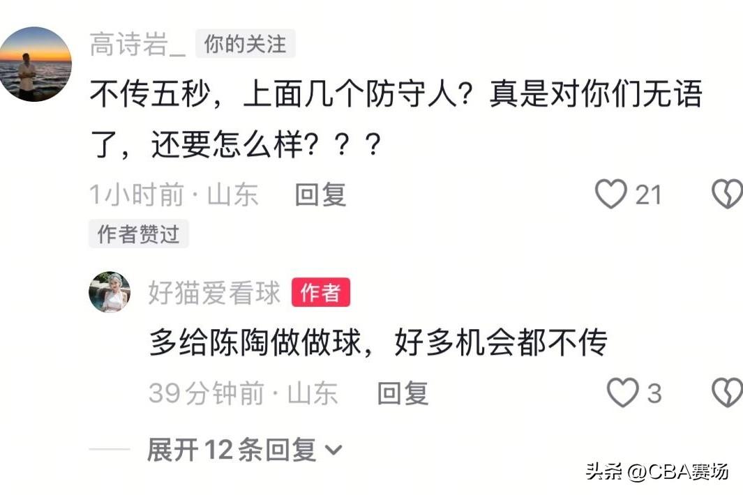 这一行为,遭到了网友吐槽,认为应该选择传给外线球员,打三分球才有打平的机会,而不是传给篮下无人盯防的队友。随后,高诗岩在评论区怒喷:“不传五秒,上面几个防守人,真是对你们无语了,还要怎么样”?