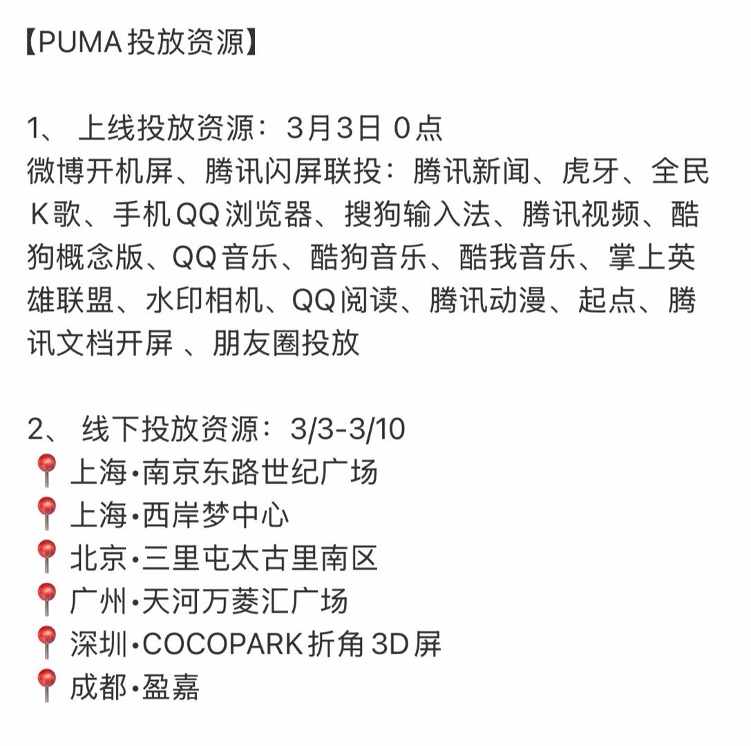 张凌赫puma官宣节奏,明天发布预热视频,3月2日正式官宣,品牌好丰富的线上线下投放资源
