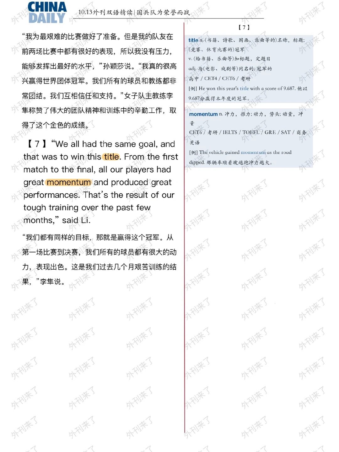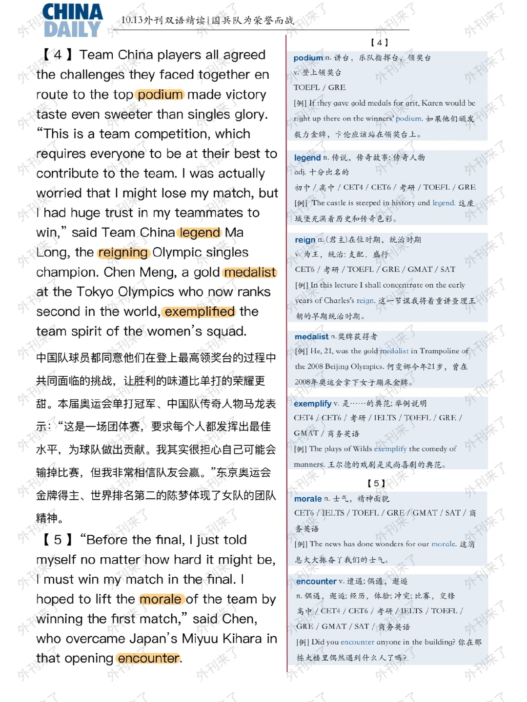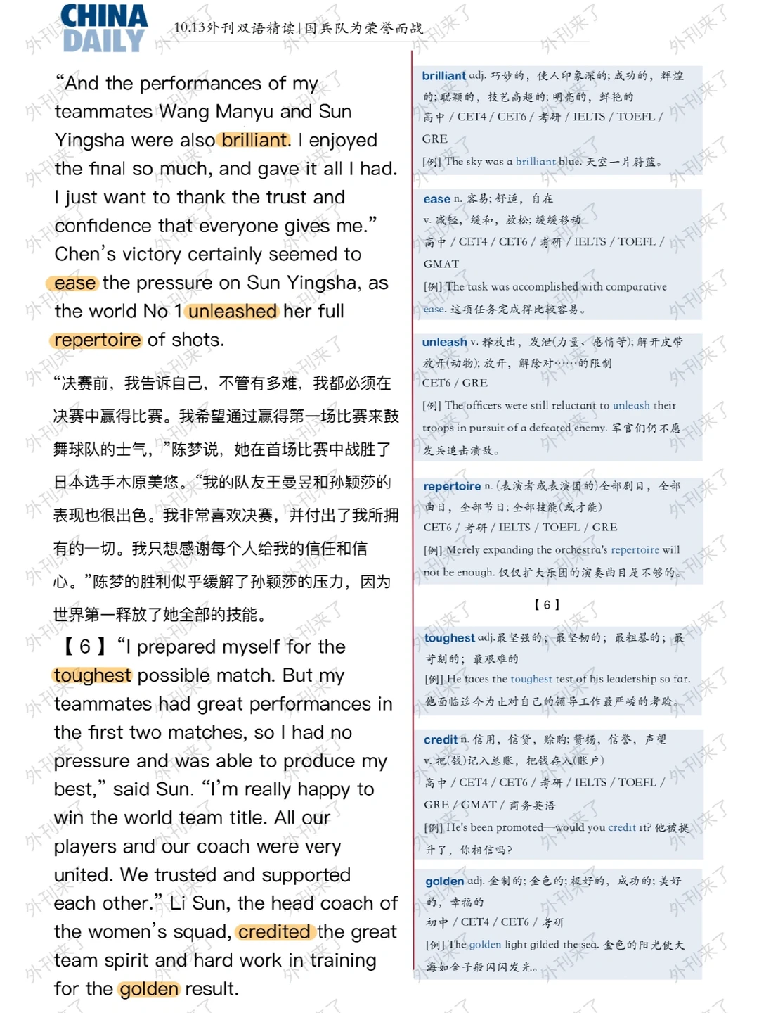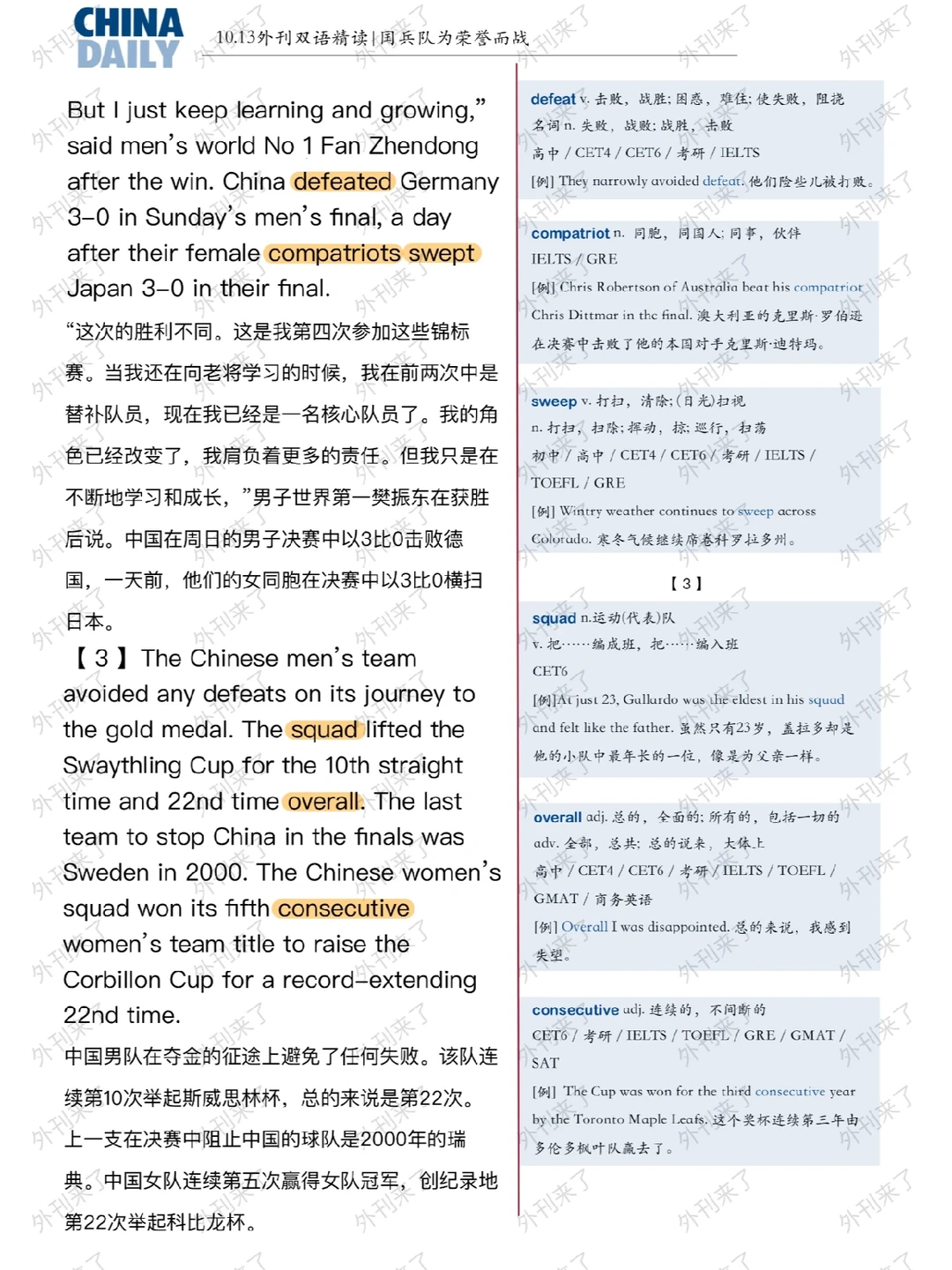 外刊双语精读13|国乒队为荣誉而战🇨🇳