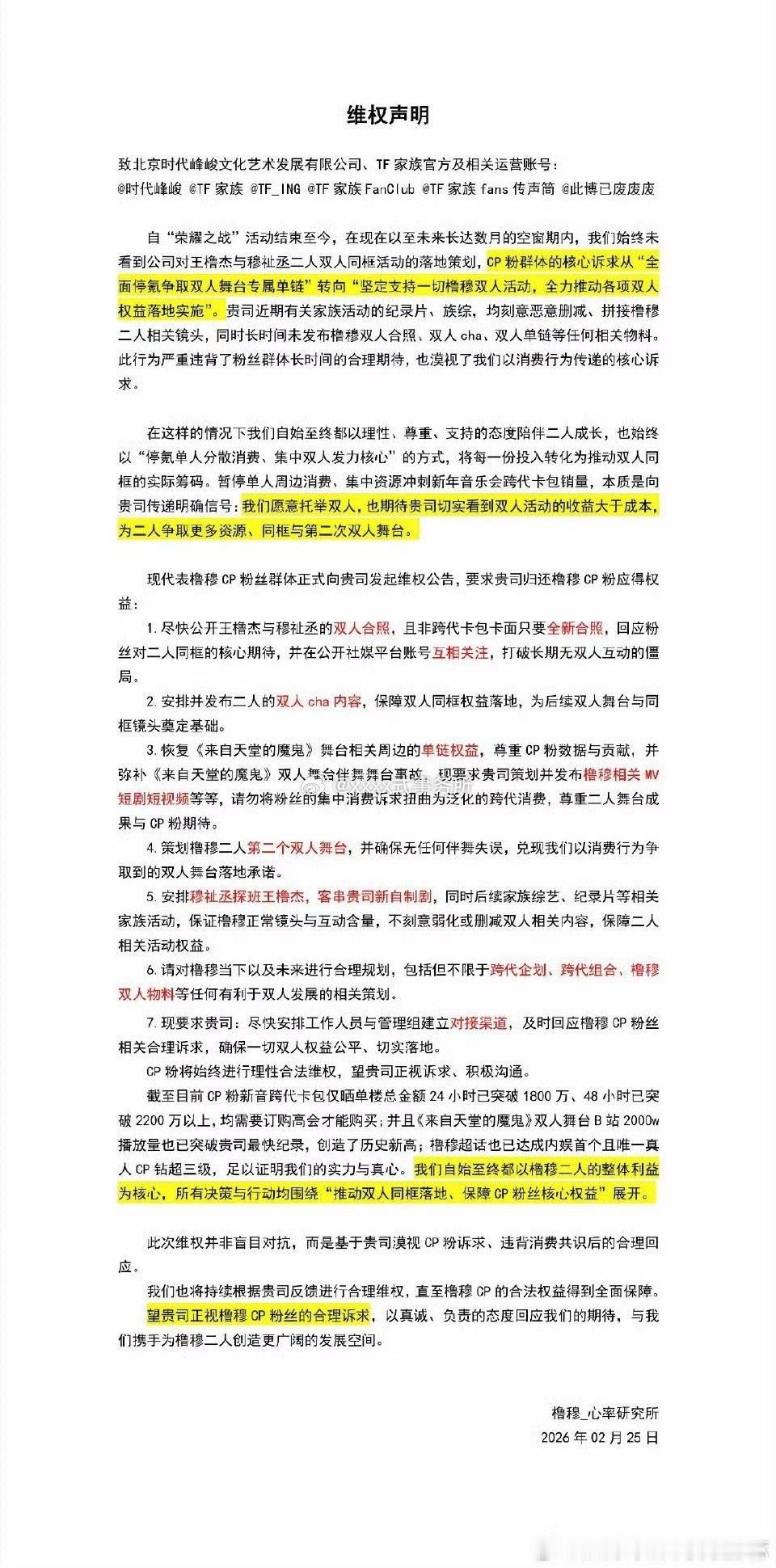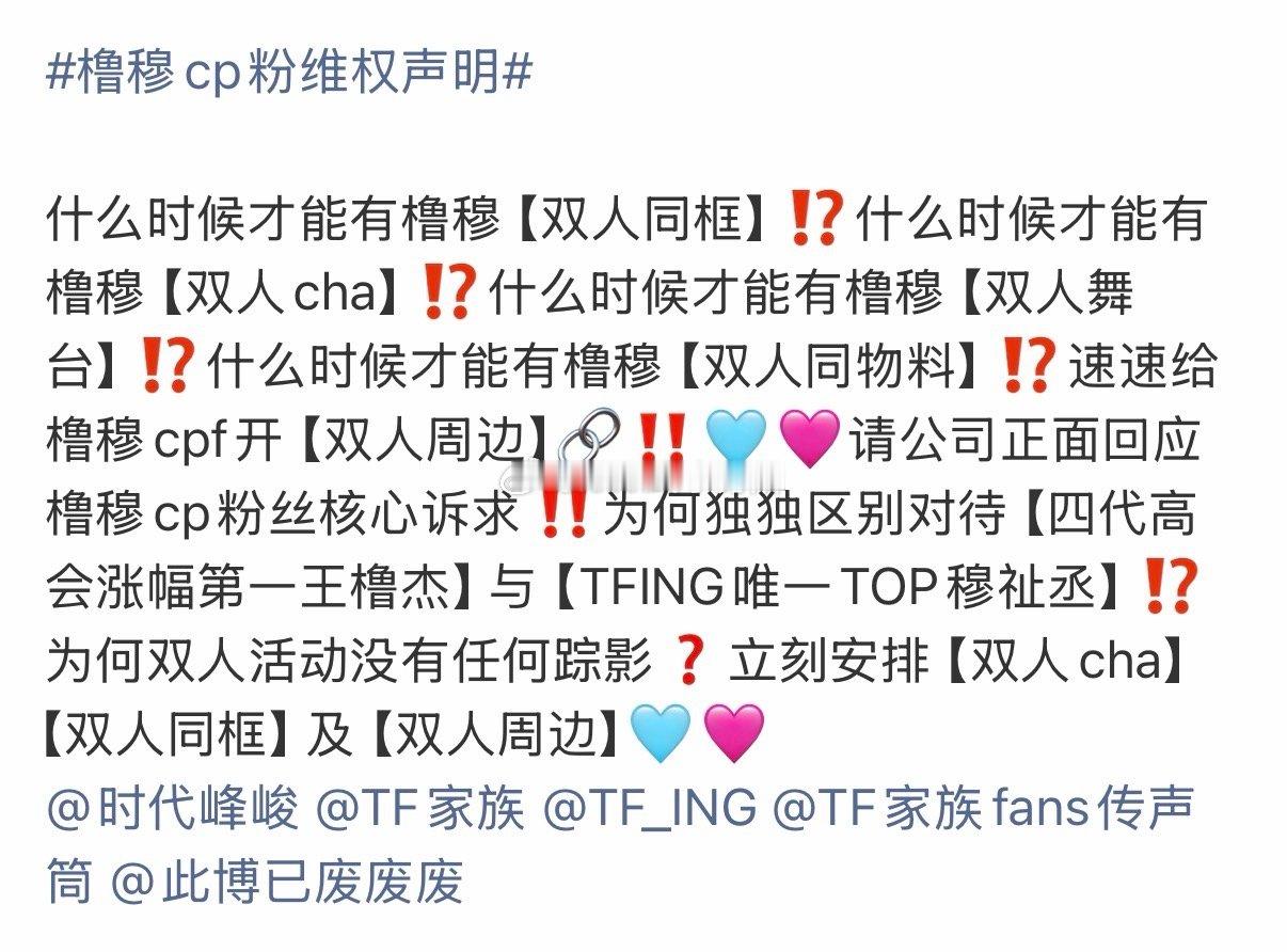 橹穆CP粉维权声明橹穆家48h花了2200万,还在增长中,达成内娱首个且唯一钻三真人cp超话,这实力真应该重视吧