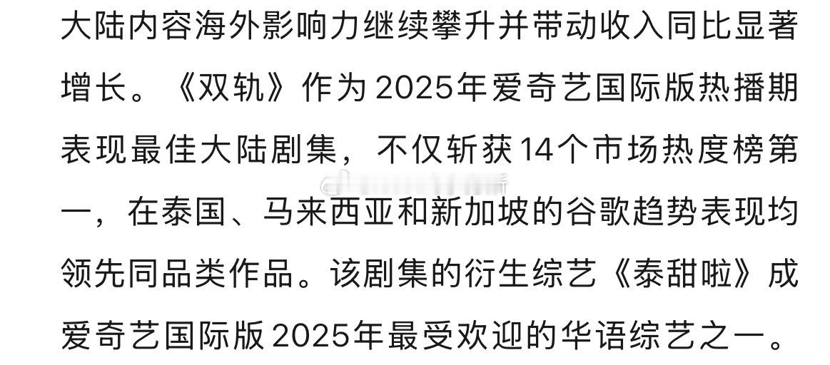 爱奇艺q4财报,海外业务唯一提到的长剧:虞书欣 何与《双轨》作为2025年爱奇艺国际版热播期表现最佳大陆剧集