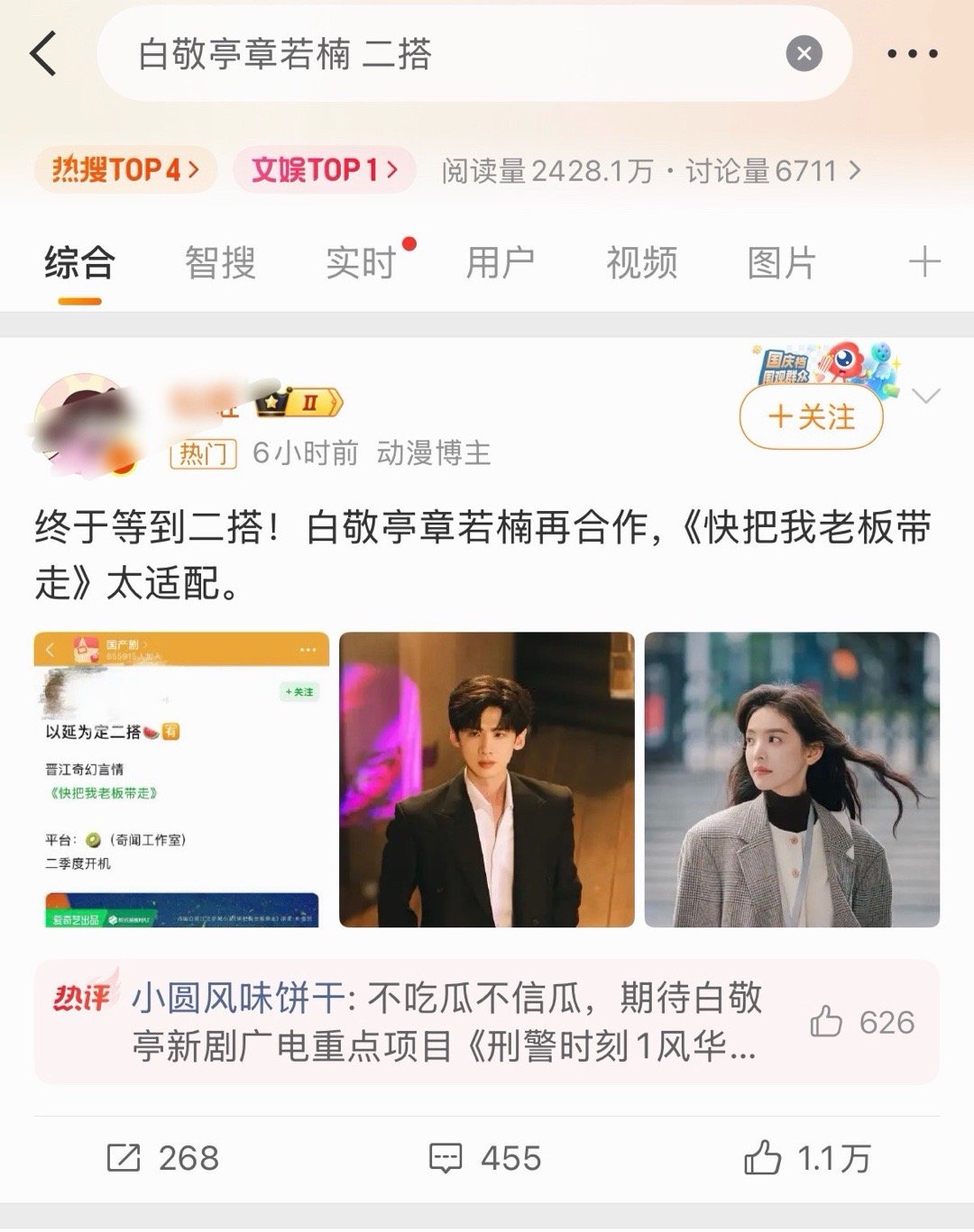 白敬亭章若楠 二搭热门全是觉得适配的文案 你们觉得呢