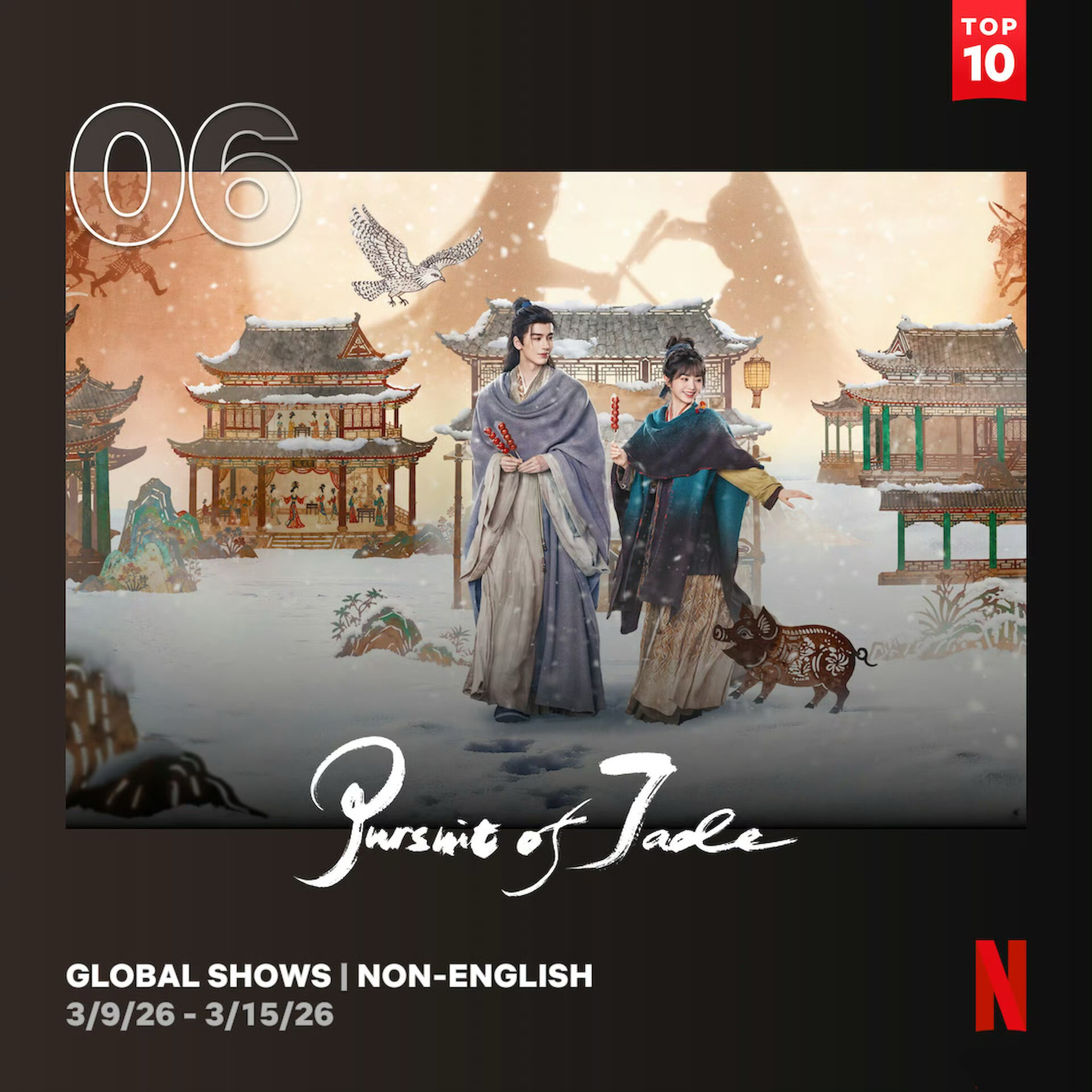 国产剧《逐玉》登顶网飞非英语剧集全球周榜第6名~