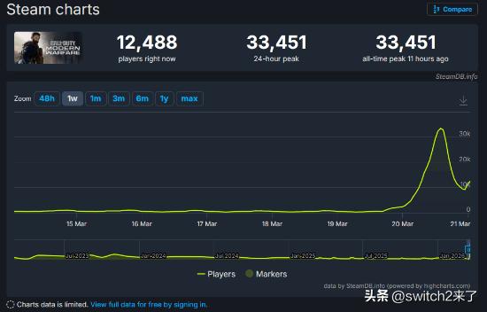 《使命召唤16:现代战争》于Steam平台迎来了前所未有的热度。受益于Steam春季特卖,这款经典作品以仅39.9元的超低价促销,在过去24小时内同时在线玩家数飙升至历史最高点。