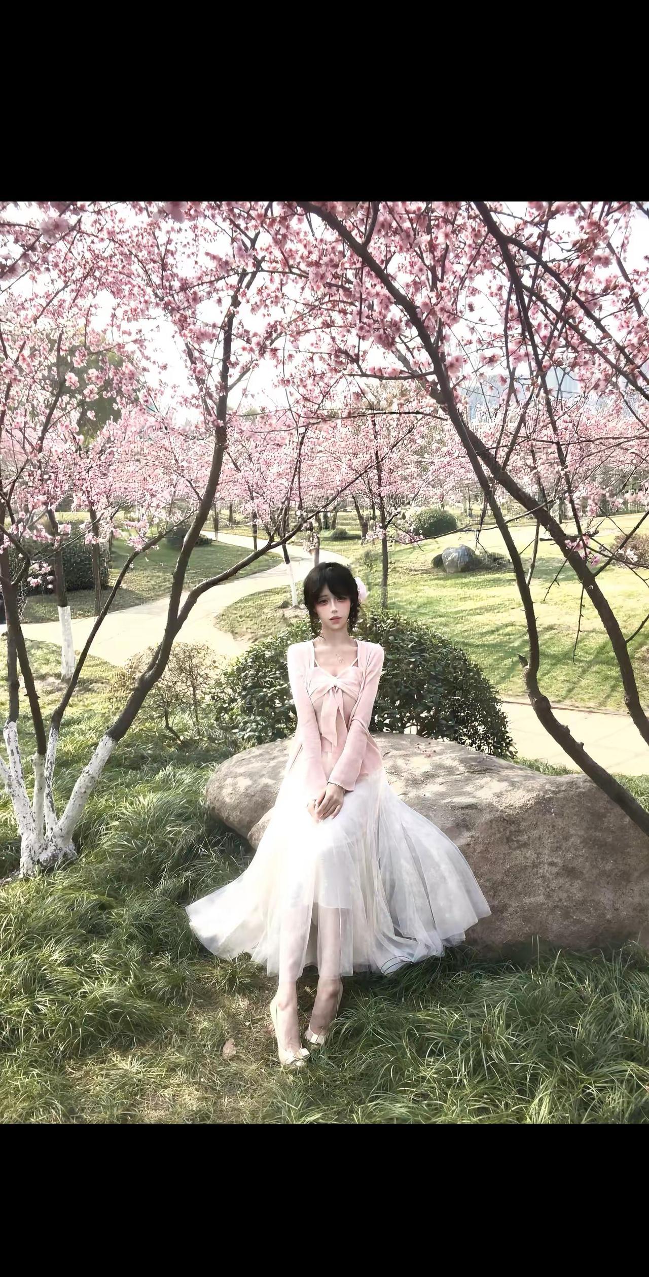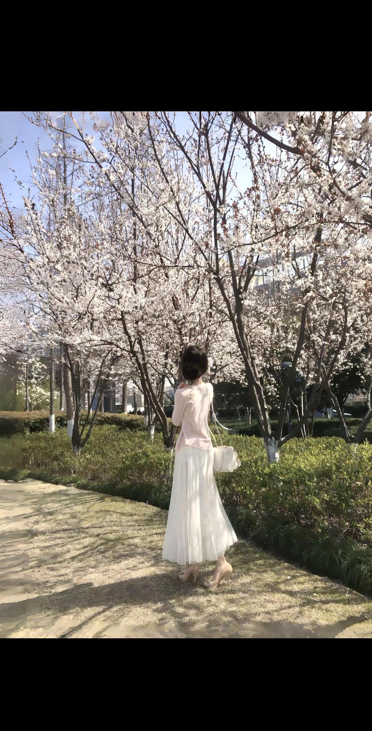 樱花树下站谁都美….早春穿搭温柔风穿搭 樱花