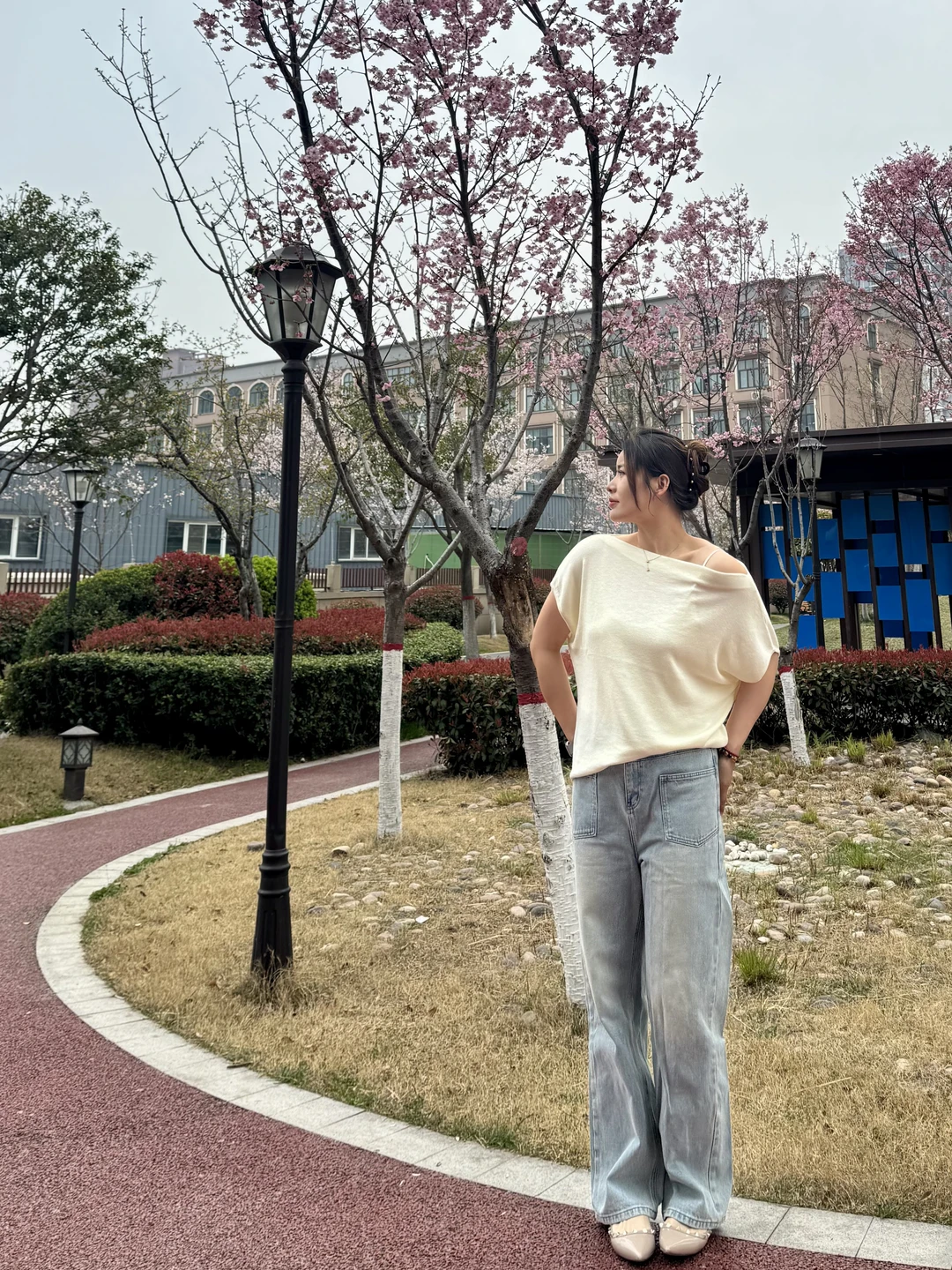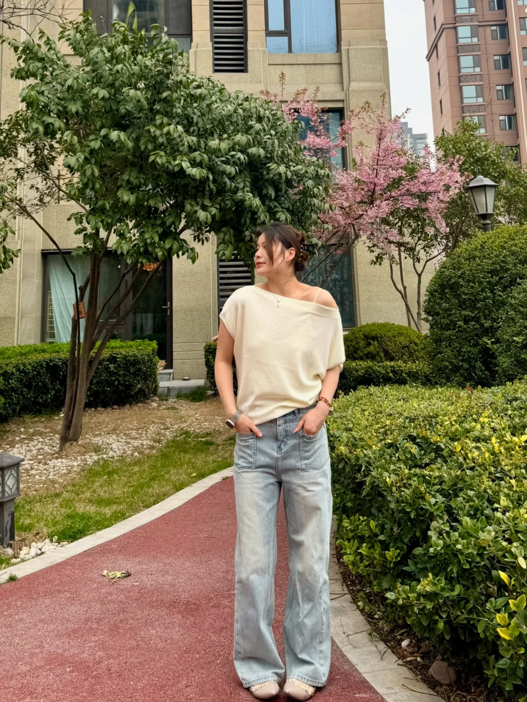 被刘雯这身机场穿搭狠狠种草!娃娃领针织衫+白衬衫,温柔又减龄,阔腿牛仔裤+乐