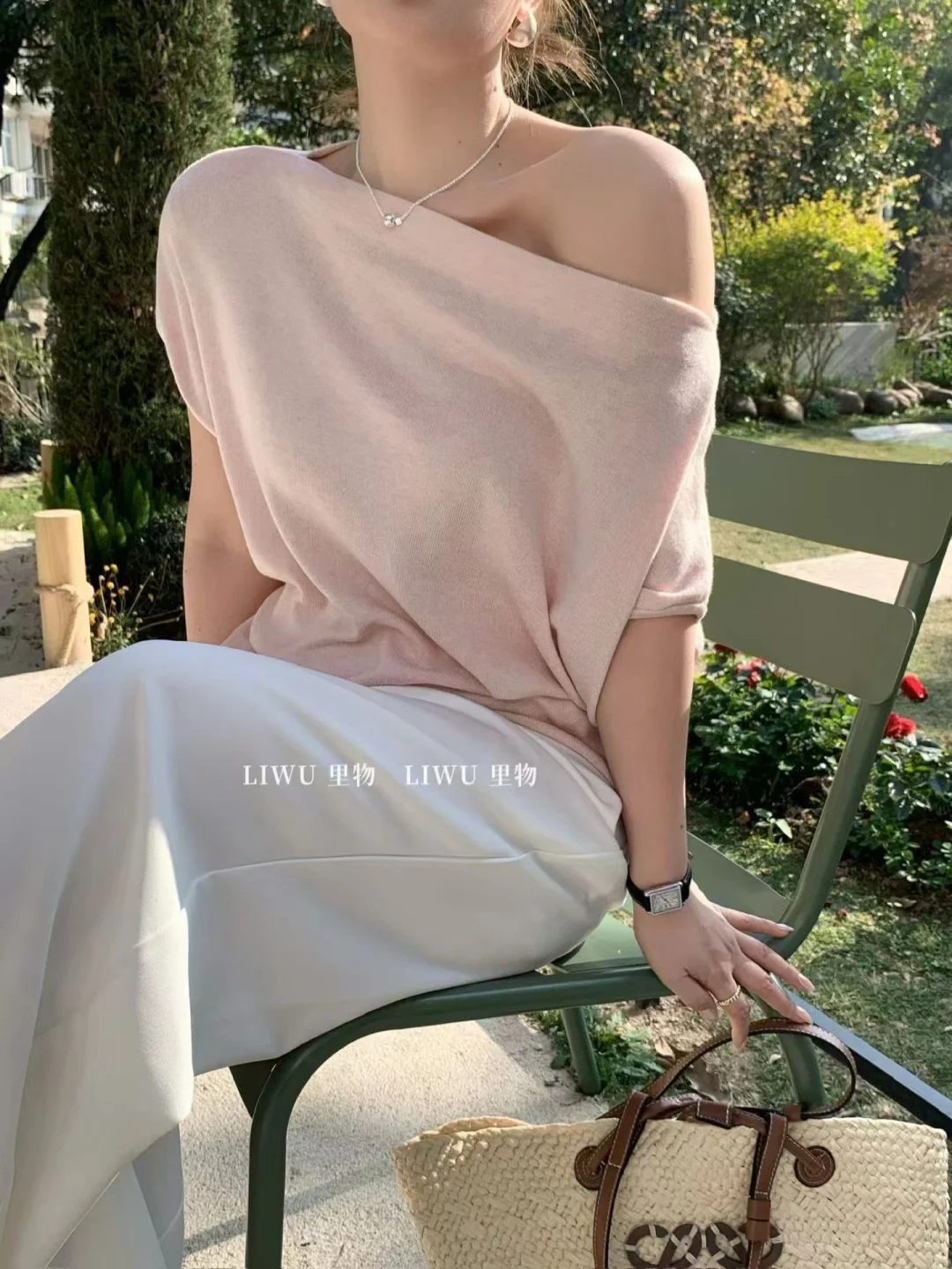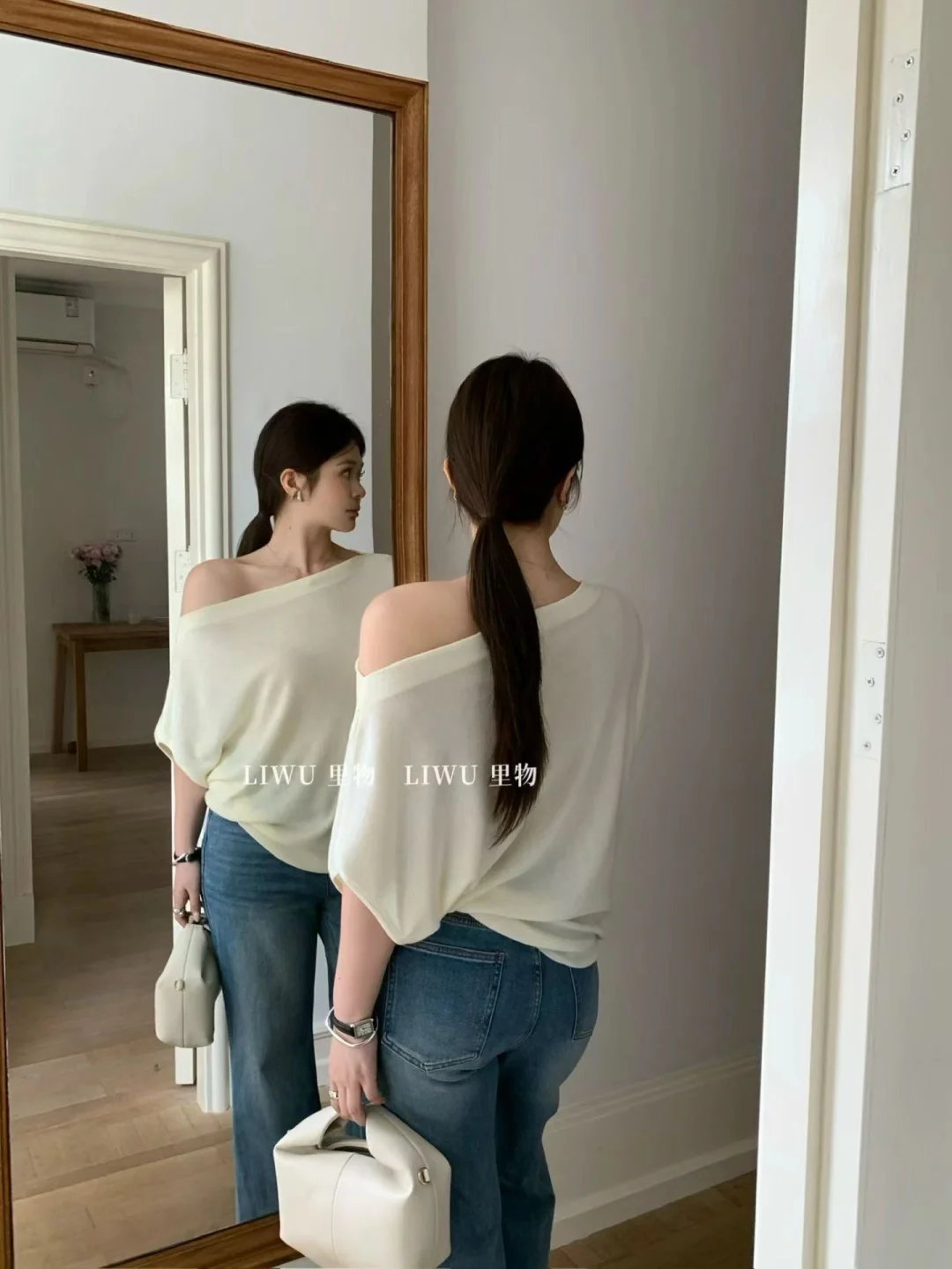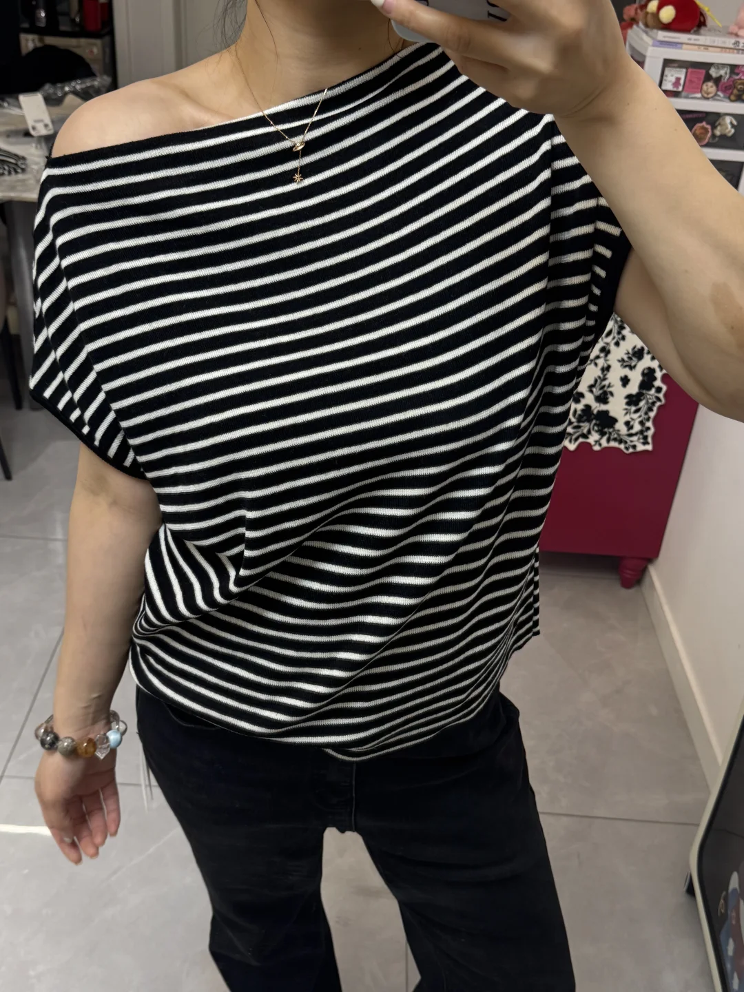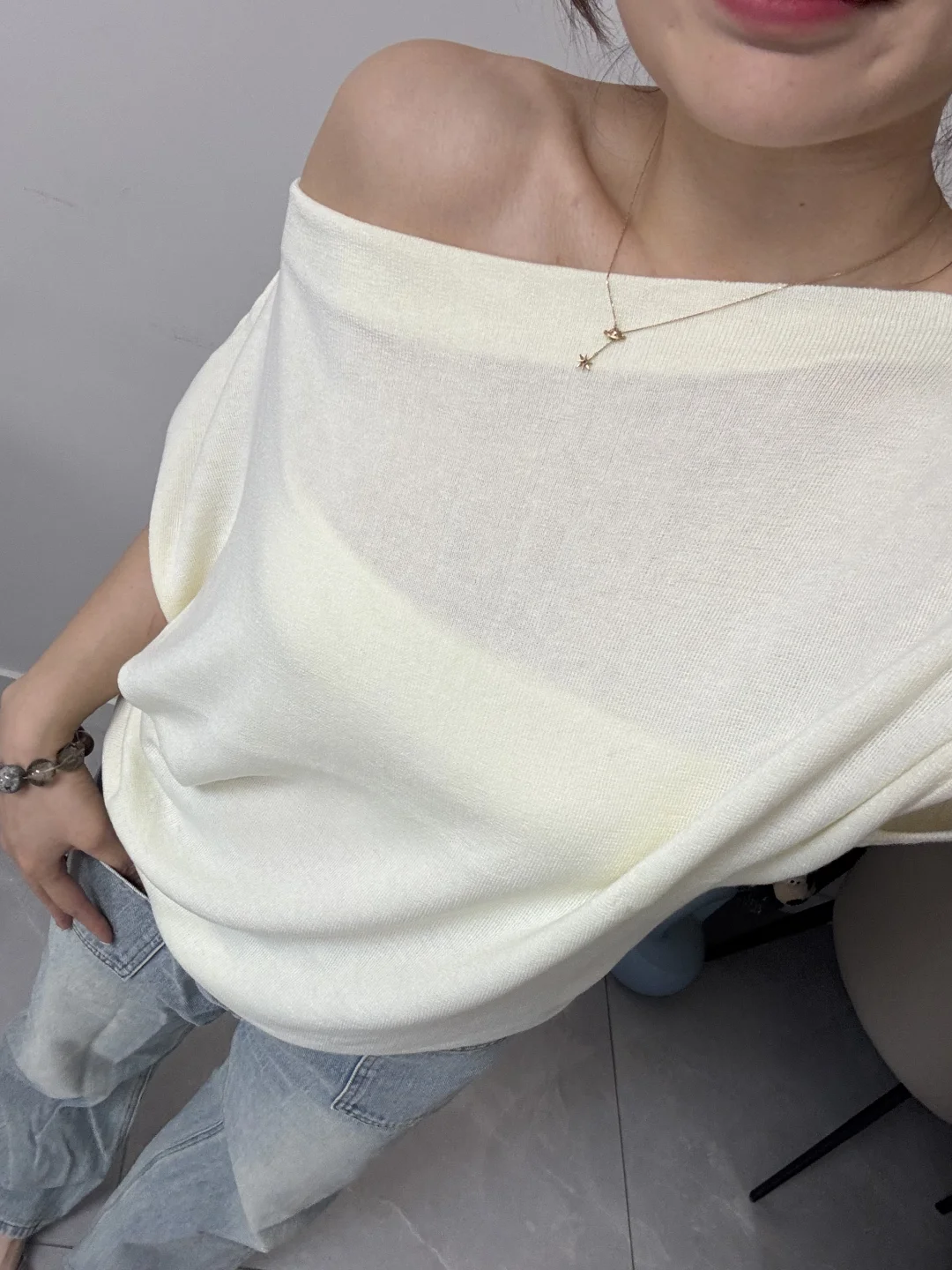落肩蝙蝠袖+斜肩剪裁完美修饰肩线和手臂
