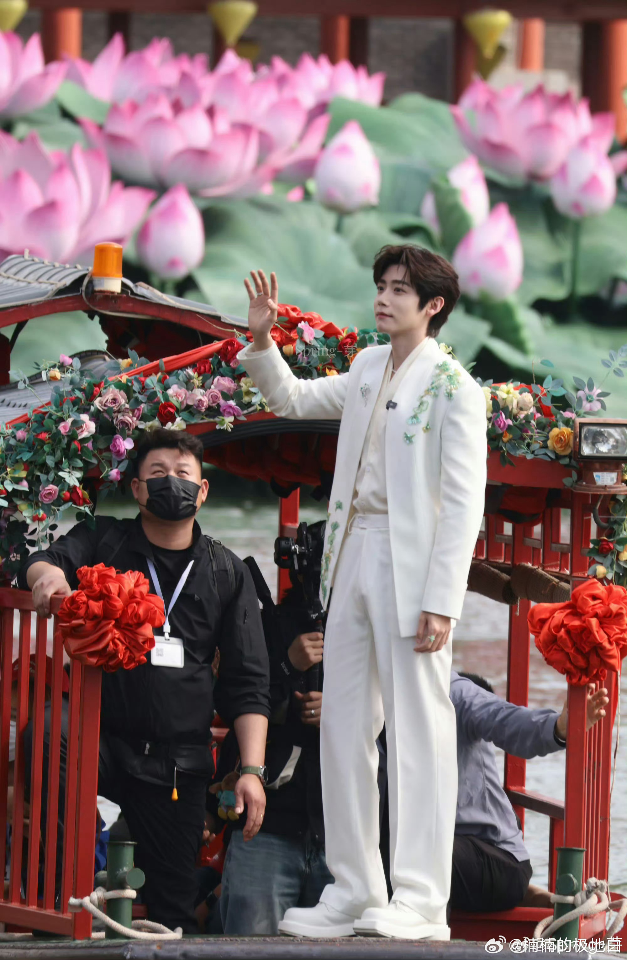 李卿新中式白西装李卿白马王子来的 新中式与白西装的碰撞太妙了!李卿花船巡游时的造
