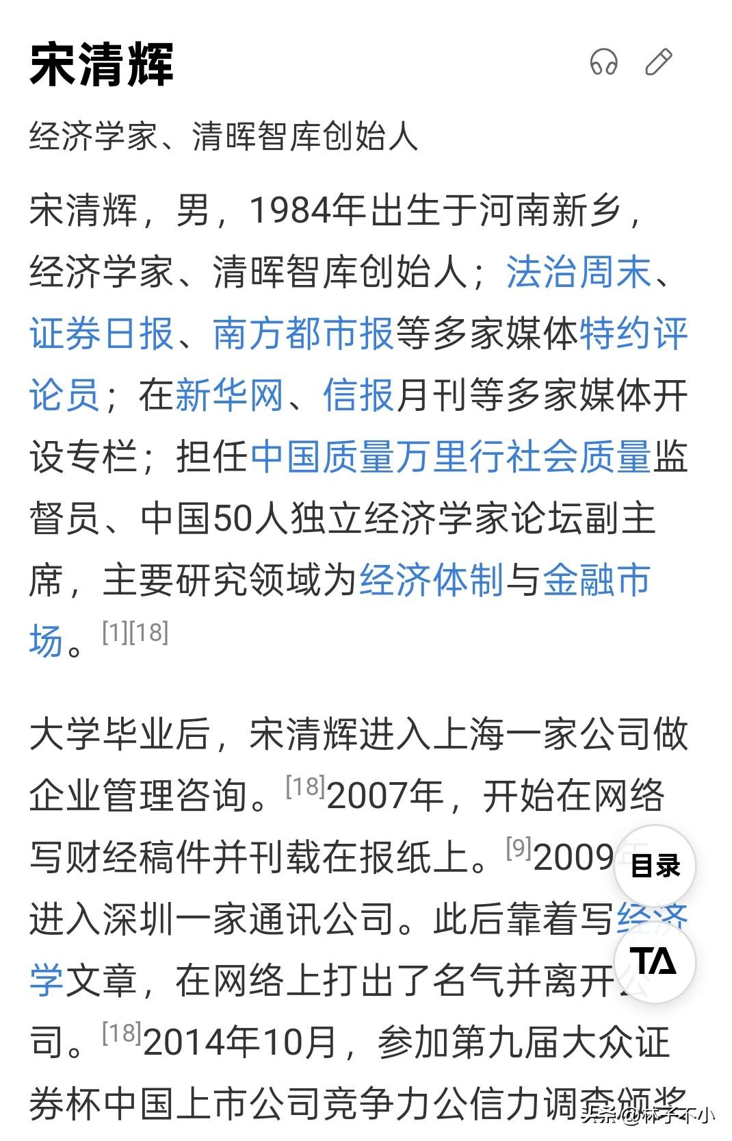 据宋清辉自己的主页介绍,他是著名的经济学家,多家媒体社论评论员。