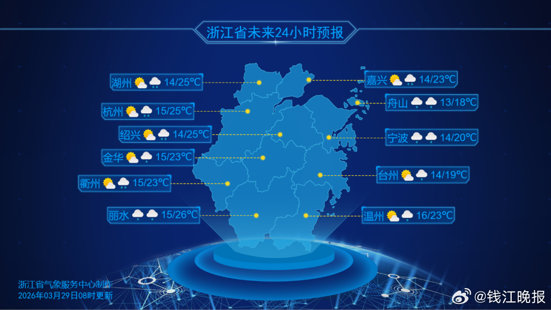 展望下周,西南暖湿气流依旧 “马力全开”。3月31日,浙中南地区仍有较明显阵雨,局部伴有雷雨,部分区域会出现中到大雨、局地暴雨。4月2日夜里,受西南急流增强影响,我省还将迎来新一轮较明显阵雨或雷雨,局部仍可能伴有强对流天气,降水频繁需持续关注。 强对流天气来袭,建议大家及时关注预报预警,避免前往灾害高风险地区,注意交通出行和旅游安全。(潮新闻 记者 俞刘东、浙江天气、中国天气网、中央气象台等综合)