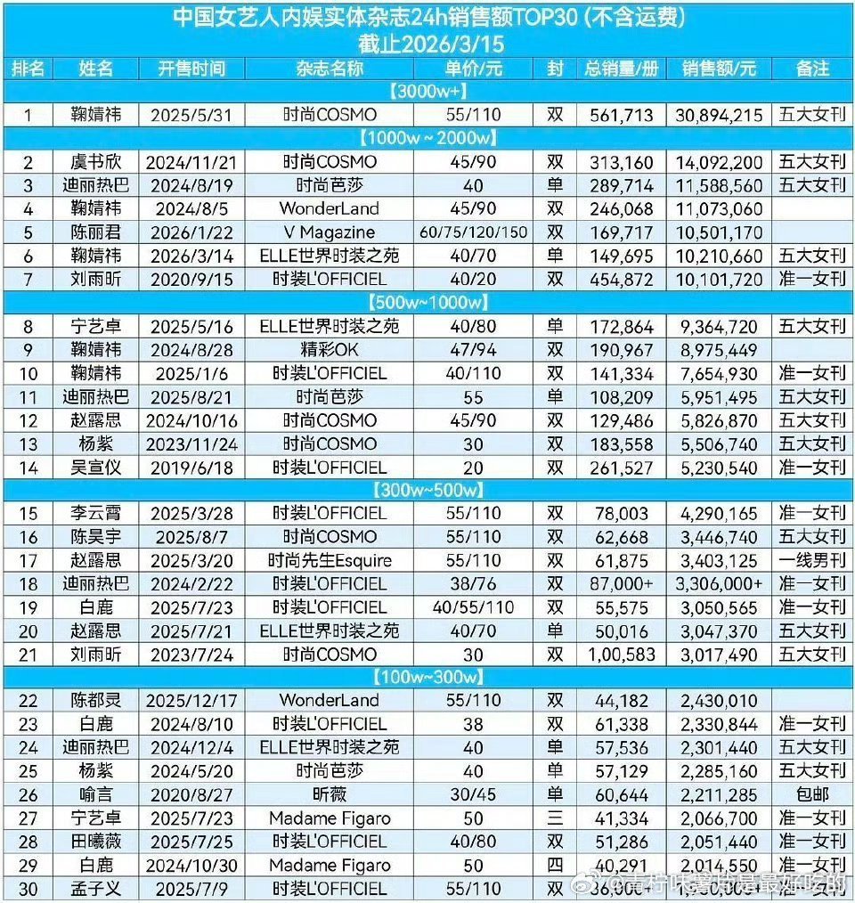 ong!! 杂志艺人分成这么高吗?根据丝芭公布的收入结构,鞠婧祎2024年两本杂志分了2000w!