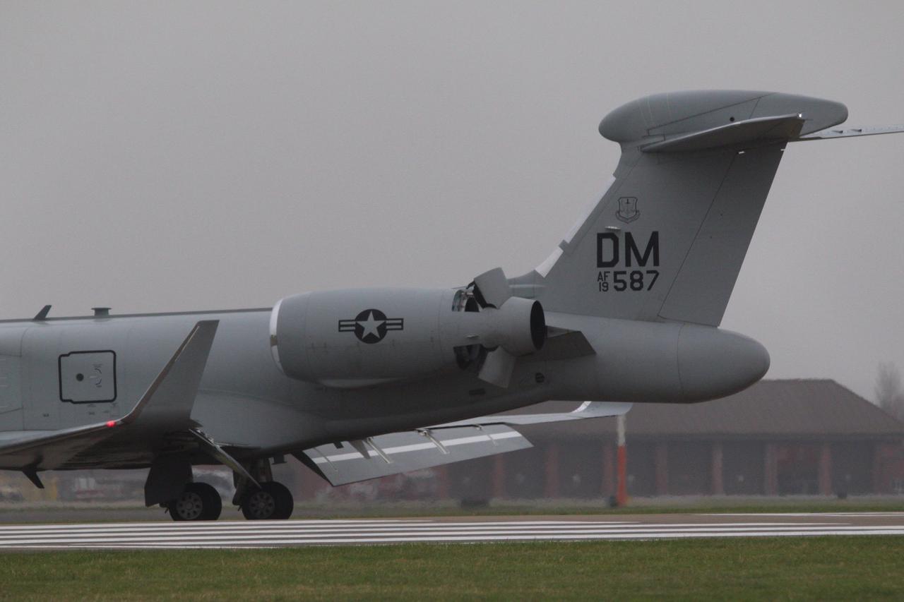 美国空军2架EA-37B电子战飞机今天出现在英国米尔登霍尔皇家空军基地,将支援“