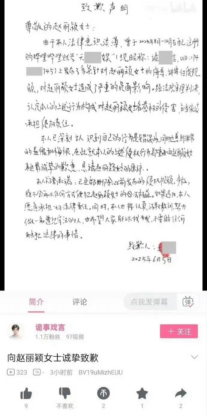 支持赵丽颖告黑道歉信+赔偿一个都别少❗️侮辱赵丽颖的汪诚公开道歉