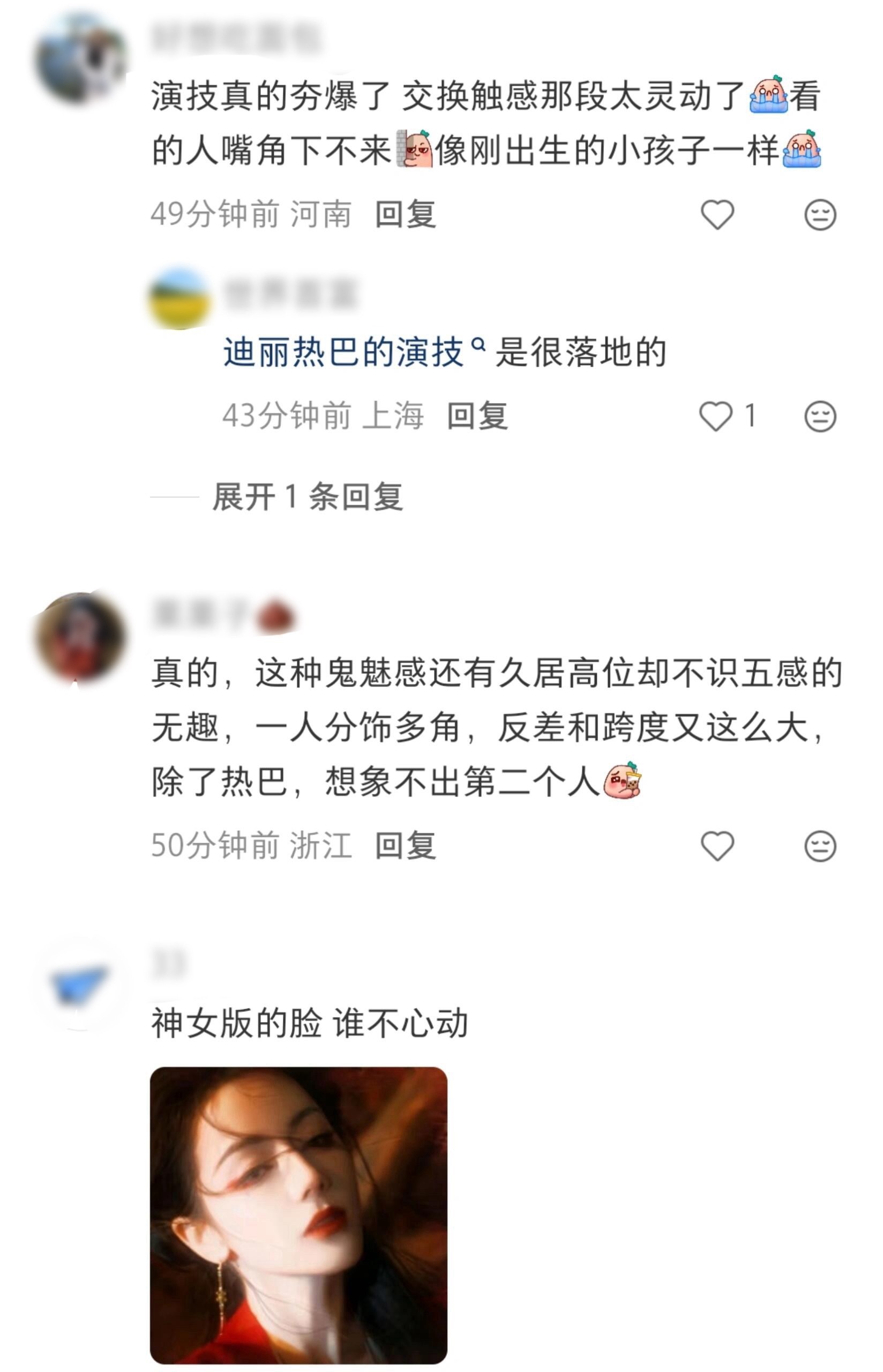 白日提灯贺思慕,这种鬼魅感还有久居高位却不识五感的无趣,一人分饰多角,反差和跨度这么大,除了迪丽热巴,想象不出第二个人我突然发现一件很有趣的事热巴是唯一一个常年被黑粉用美貌攻击演技的艺人,很像矛和盾,其实她都有,只是他们不愿承认,非把这两样武器分开论。90后至今唯一主流奖视后,真不是闹着玩的…